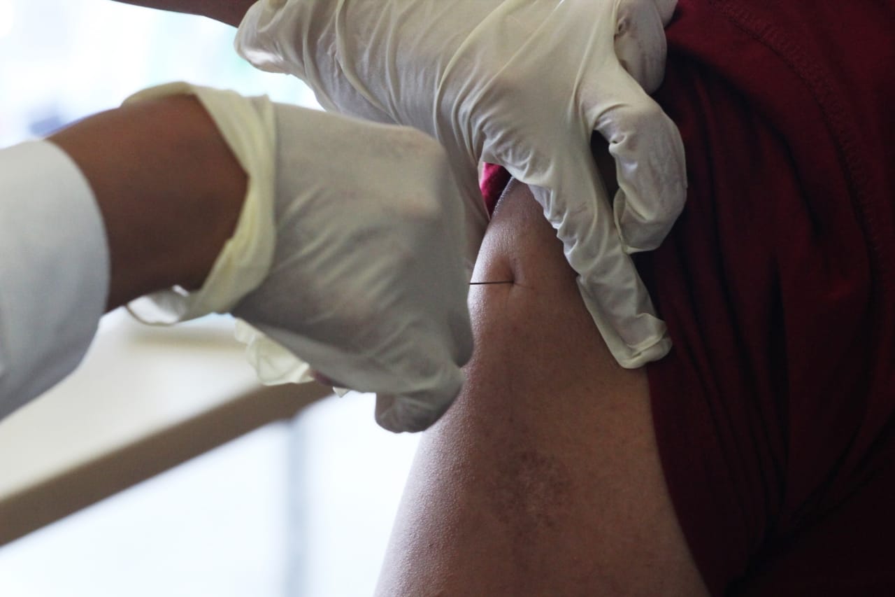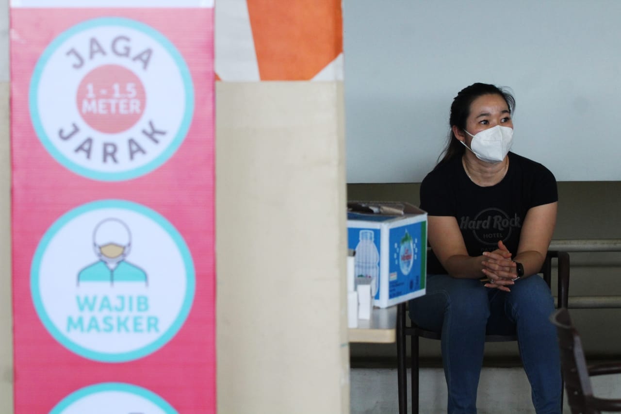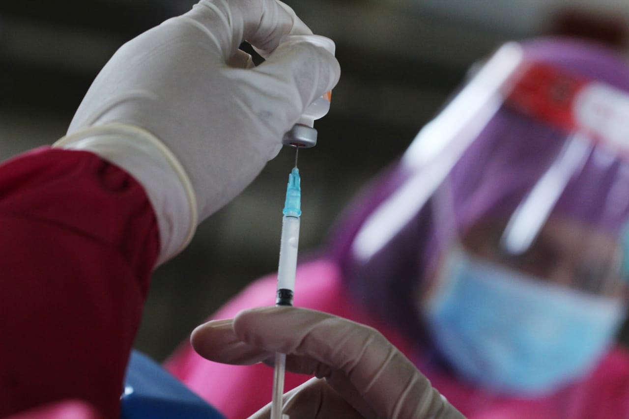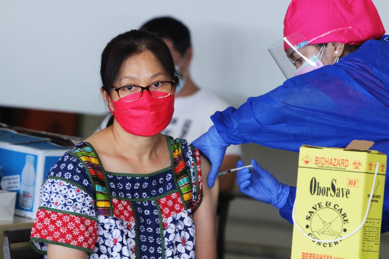 Vaksinator menyuntikkan vaksin COVID-19 Sinovac kepada pedagang saat vaksinasi di Summarecon Mall Serpong, Kecamatan Kelapa Dua, Kabupaten Tangerang, Selasa (9/3/2021). Sebanyak 1.000 pedagang pasar di Kabupaten Tangerang menjalani vaksinasi COVID-19 tahap pertama. Banten Aktual/Dennys