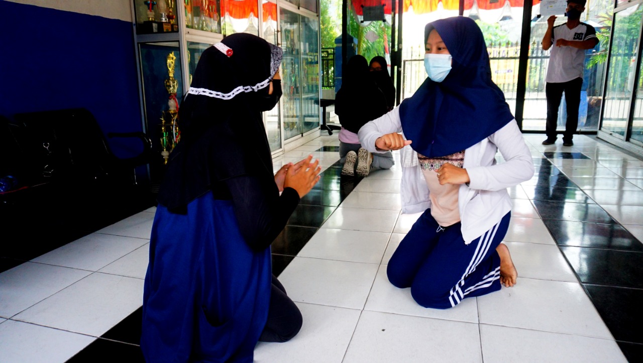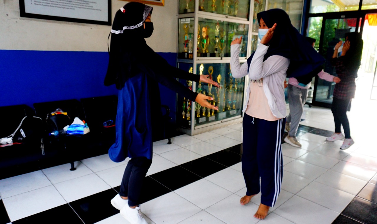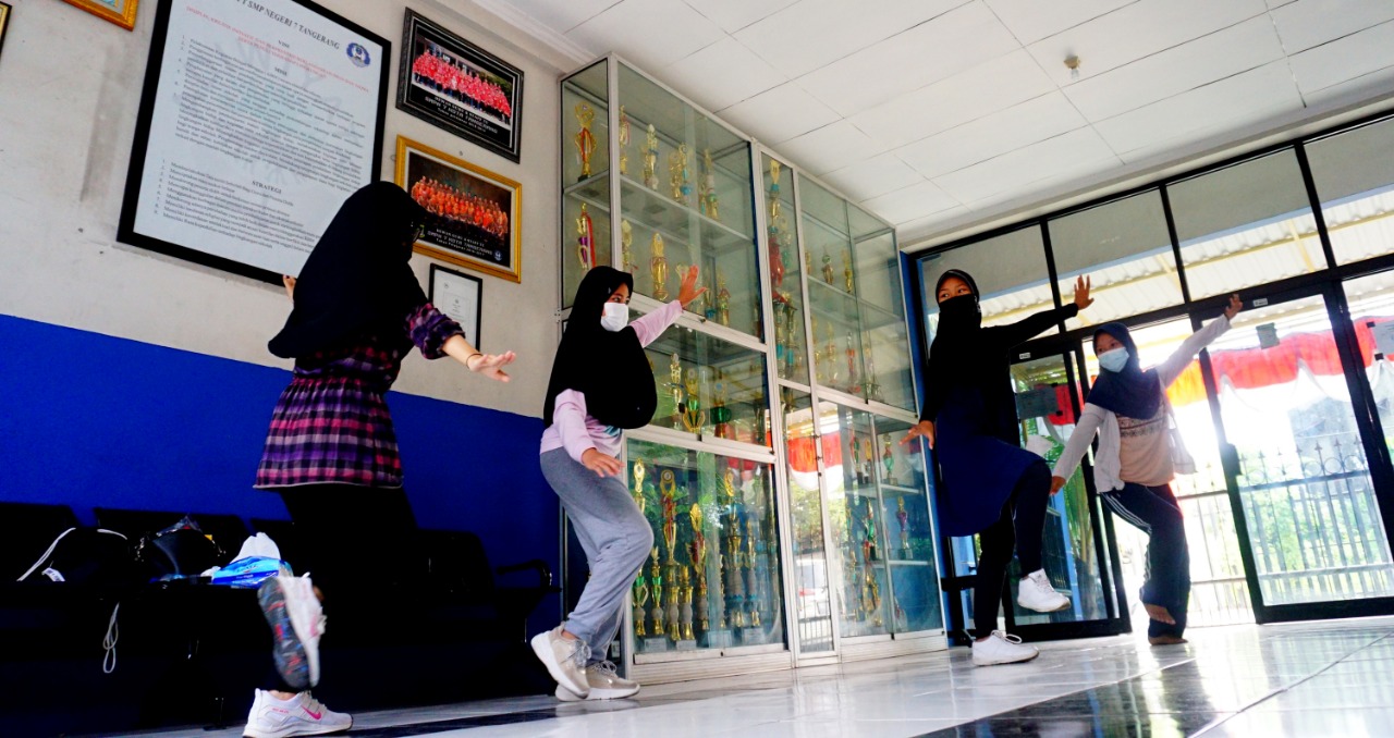 Jelang perayaan HUT RI ke 76 yang akan di adakan di Kota Tangerang dan akan diadakannya lomba tari kreasi nusantara tingkat umum pada September mendatang, Sekolah Menengah Pertaman Negeri 7 (SMPN7) Kelurahan Batuceper Kota Tangerang, jalani latihan rutin untuk menjadi yang terbaik, dalam menjalani latihan rutin para siswa tetap menjalankan protokol kesehatan. Rabu (25/8/21). Banten Aktual/Dennys