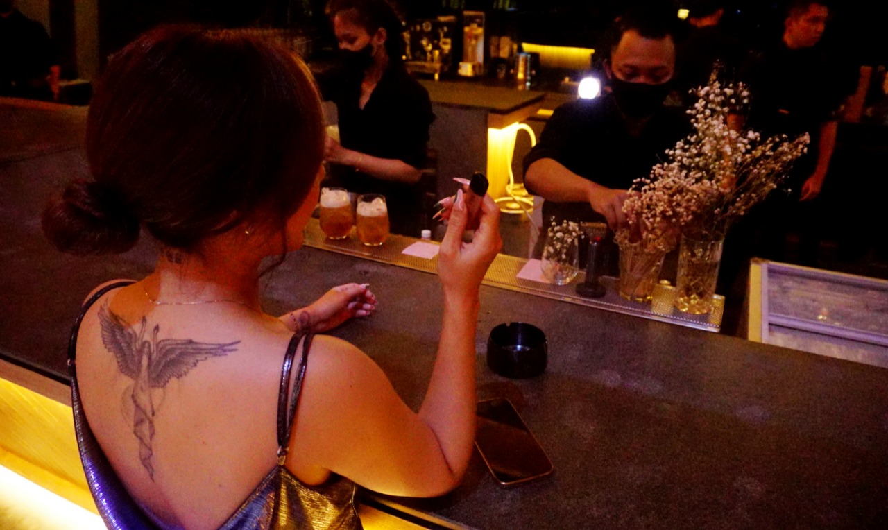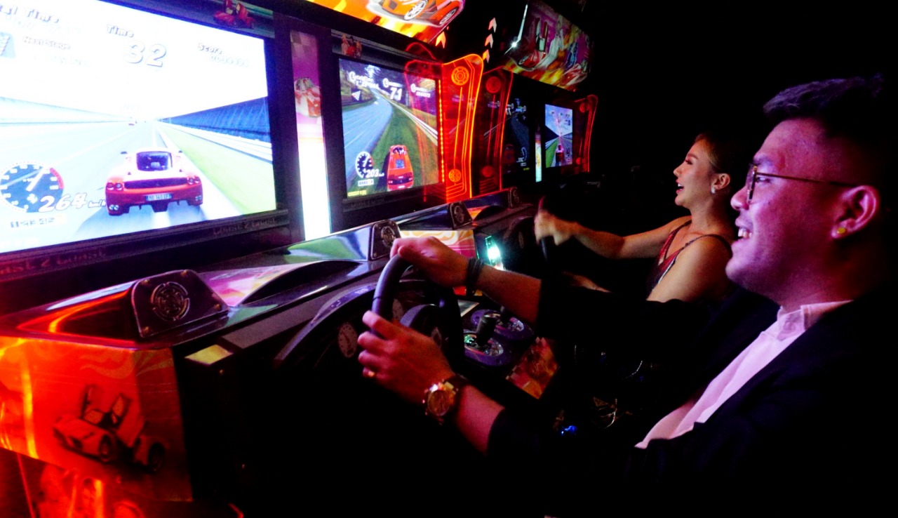 Black Owl Golf Island PIK (Pantai Indah Kapuk) Bar and Resto Hadirkan nuansa game zone di ruang VIP, selain nuansa santai dan happy para pengunjung dapat menikmati permainan seperti layaknya anda di tempat permainan yang ada di Mall. Seperti terlihat salah satu owner black owl (Tigris Valeri) sedang memainkan permainan balap mobil bersama rekannya. Selasa (22/2/22). Banten Aktual/Dennys