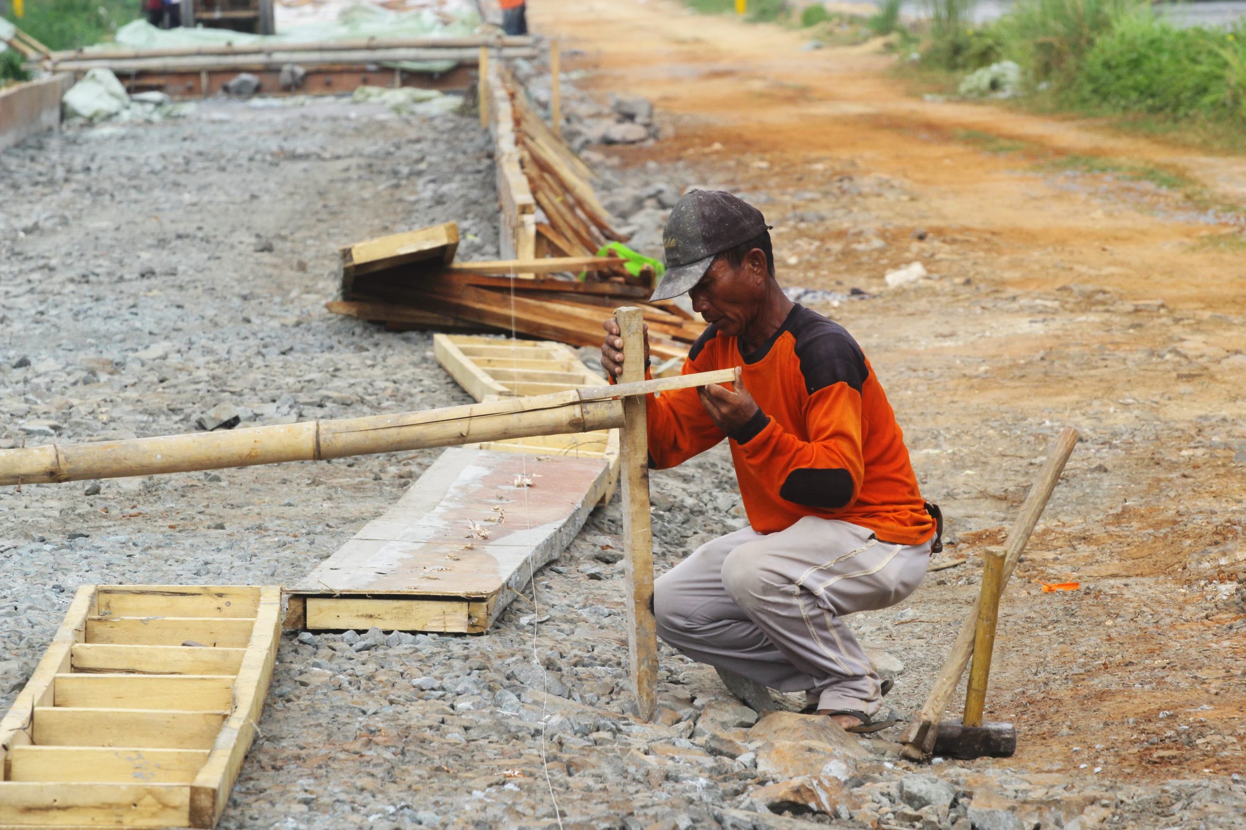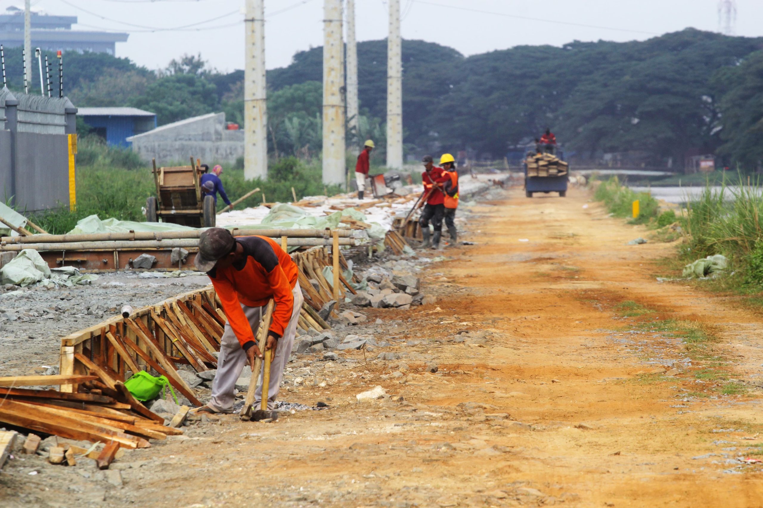 Dinas Pekerjaan Umum dan Penataan Ruang (DPUPR) Kota Tangerang, Banten melanjutkan pembangunan jalan sisi saluran Cisadane Barat sepanjang 2,2 kilometer yang akan menghubungkan daerah Bayur dan Cadas. Pada 2024, DPUPR Kota Tangerang melakukan pembangunan Jalan Bayur-Sangego sepanjang 400 meter dengan lebar 3,5 meter. Pemkot Tangerang menargetkan pembangunan jalan baru ini mampu menghubungkan akses mobilitas mulai dari pertigaan di depan Rumah Potong Hewan (RPH) Bayur hingga Pintu Air Sekunder Kedaung. Senin (19/05/25). Banten Aktual/Dennys