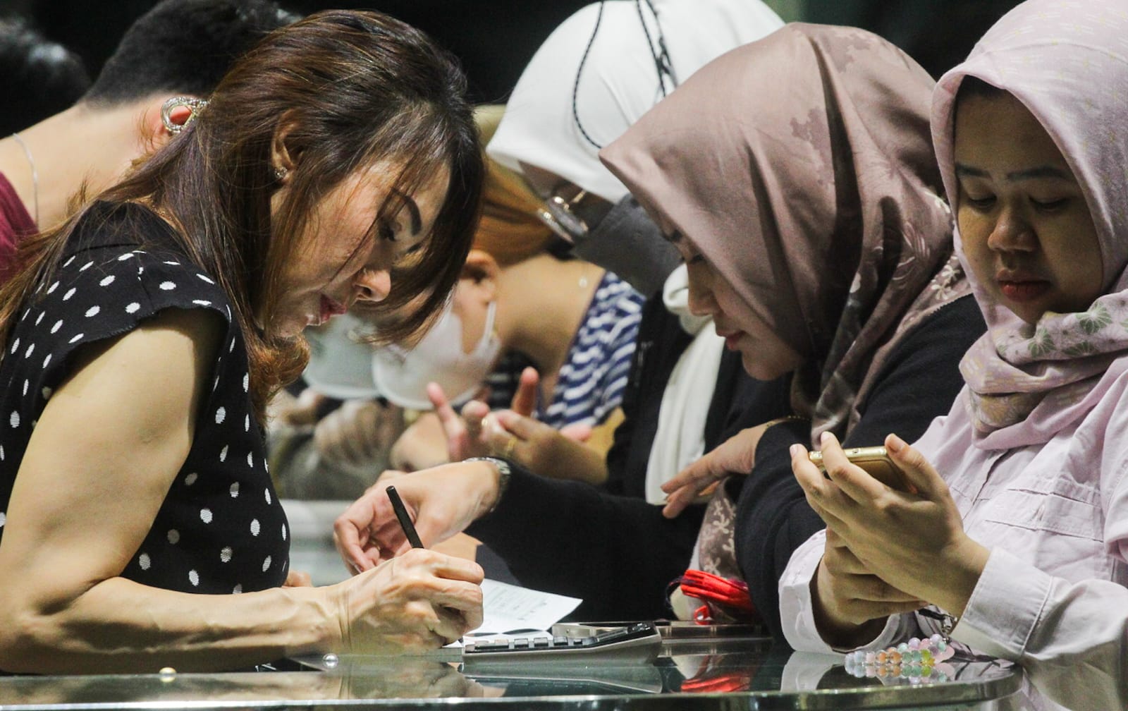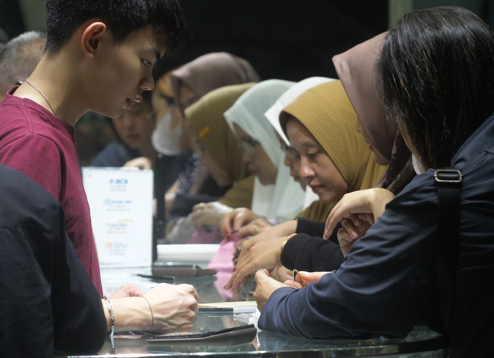 Harga emas tembus rekor karena besarnya permintaan dari bank sentral sejumlah negara seperti China serta ketegangan geopolitik di Timur Tengah. Jelang kenaikan harga emas global warga Kota Tangerang Banten berbondong-bondong membeli emas di Setiap toko emas yang berada di Mall Modernland Town Square (Metos) Kota Tangerang. Kenaikan pembeli di perkirakan hingga 20% dari bulan kemarin. Seperti diketahui, harga emas mencetak rekor berkali-kali sepanjang bulan ini. Rekor tertinggi yang dicetak harga emas ada di posisi U$2.382,83 per troy ons. Sepanjang tahun ini, harga emas sudah tembus 14,7%. Tampak terlihat sebuah toko emas penuh di datangi Warga sedang bertransaksi. Minggu (13/04/25). Banten Aktual/Dennys