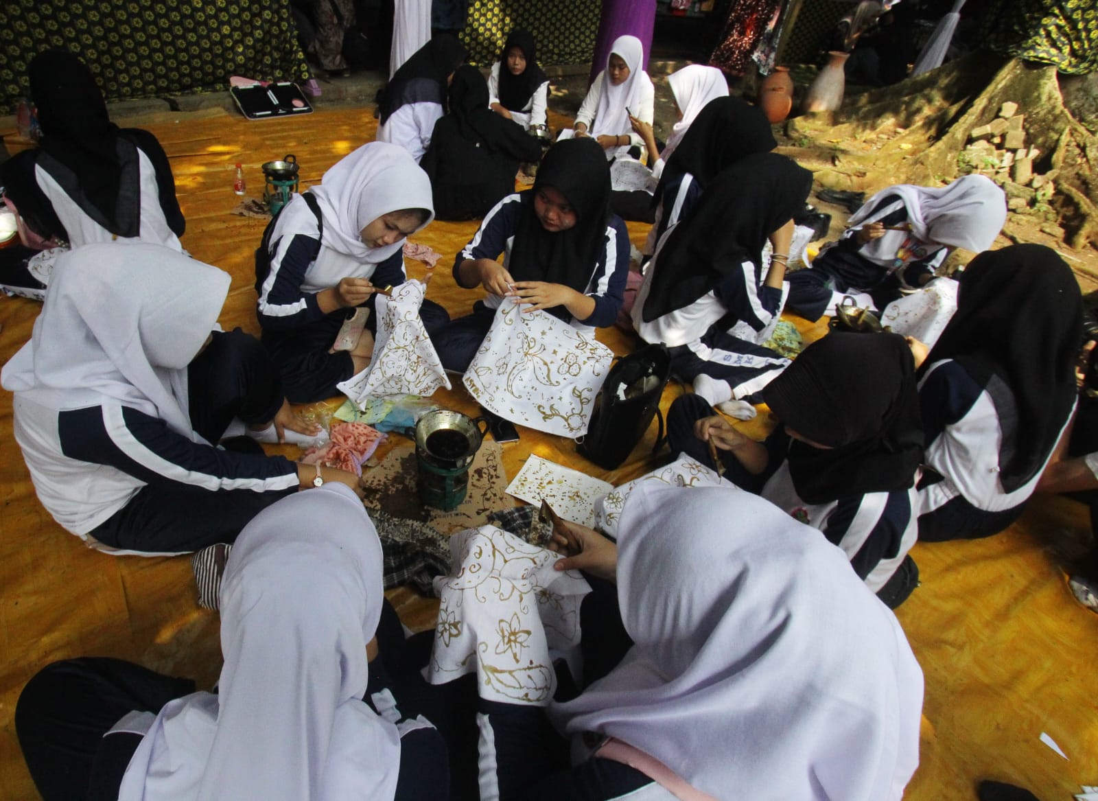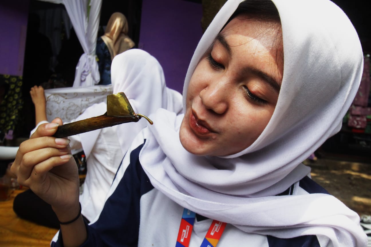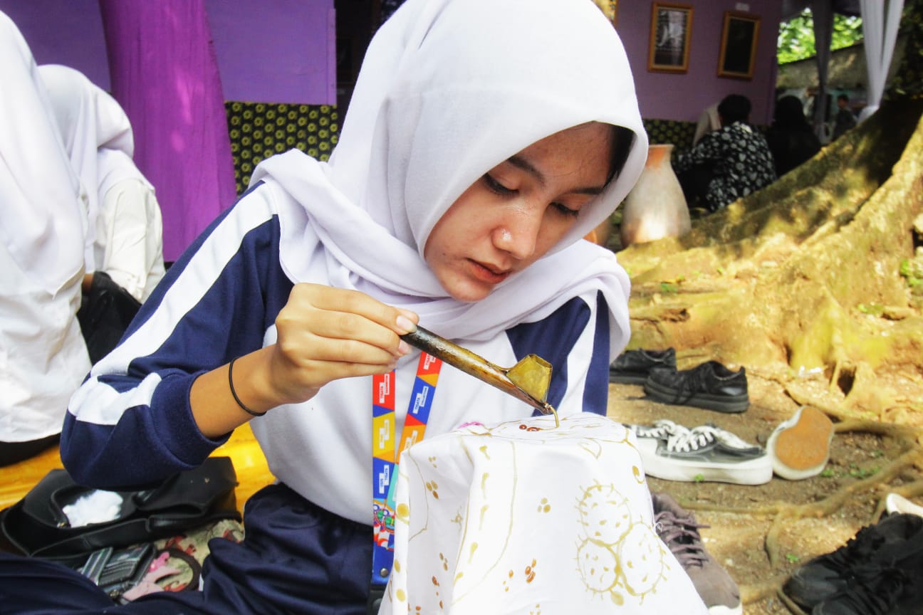 Bupati Tangerang Moch Maesyal Rasyid menghadiri dan sekaligus membuka acara Festival Batik di Kampung Budaya Kemuning Kabupaten Tangerang. Festival yang diadakan selama tiga hari ini menjadi satu pembelajaran dan sekaligus menumbuhkan rasa cinta kepada budaya Nusantara Indonesia. Tampak terlihat para pelajar sedang mencanting di acara Festival Batik 2025. Rabu (16/07/25). Banten Aktual/Dennys