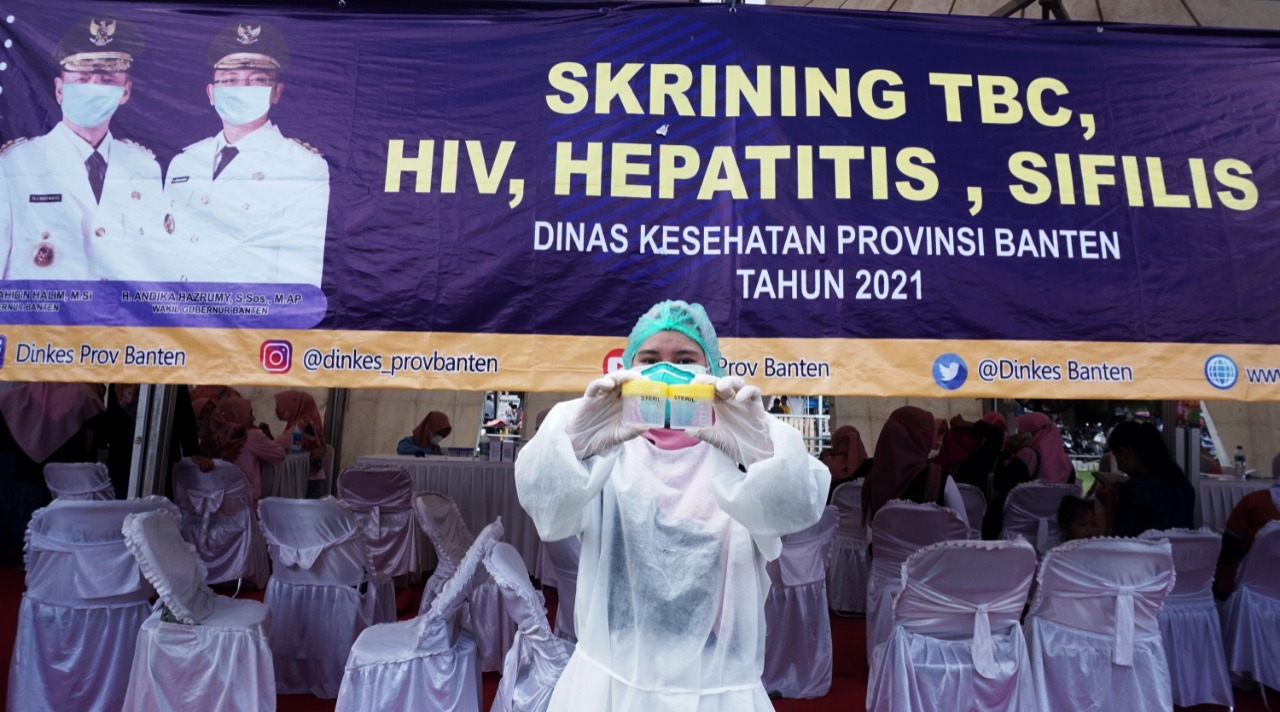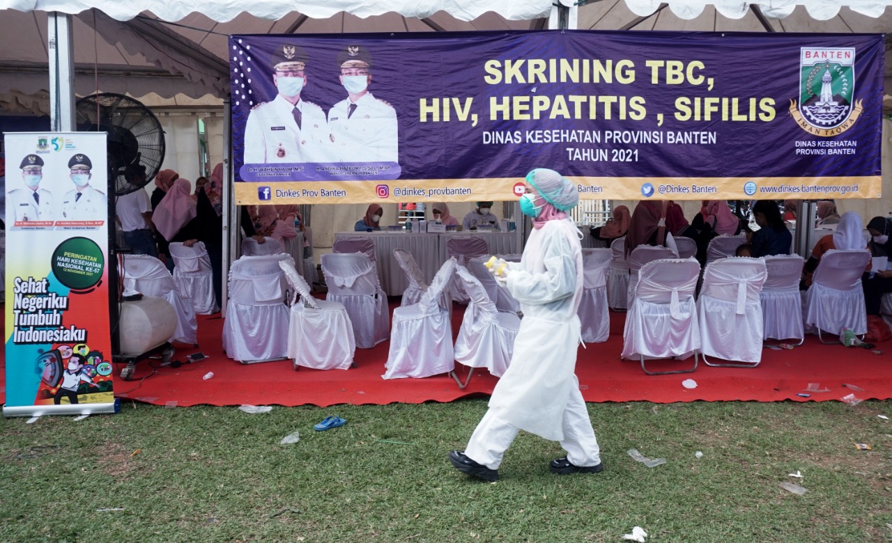 Pemerintah Provinsi Banten menggelar pengobatan geratis dalam memperingati Hari Kesehatan Nasional ke-57 tahun bagi warga Kabupaten Tangerang. Acara yang dilakukan di Lapangan Bola Kecamatan Legok Kabupaten Tangerang ini di padati warga, terlihat antrian panjang warga yang akan mengecek kesehatannya menjadi bukti antusias warga untuk melakukan cek kesehatan, terutama pengecekan kesehatan penyakit menular seperti TBC, HIV dan Sipilis, selain itu juga pemerintah Provinsi mengadakan Vaksin dan Sunat Masal. Kamis (25/11/21). Banten Aktual/Dennys