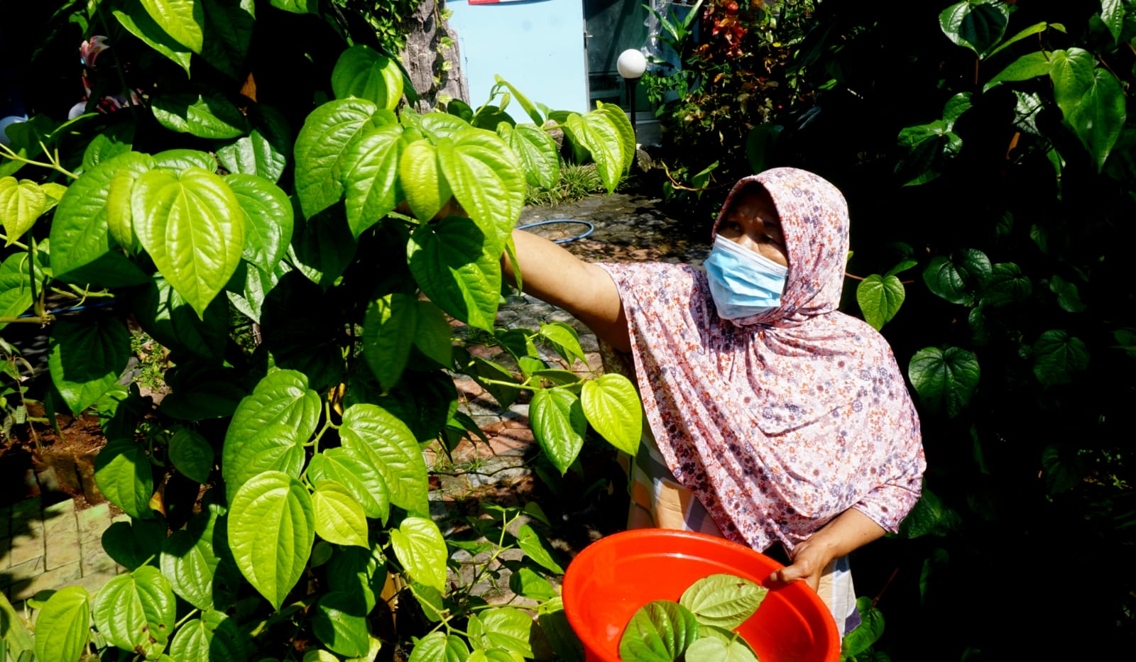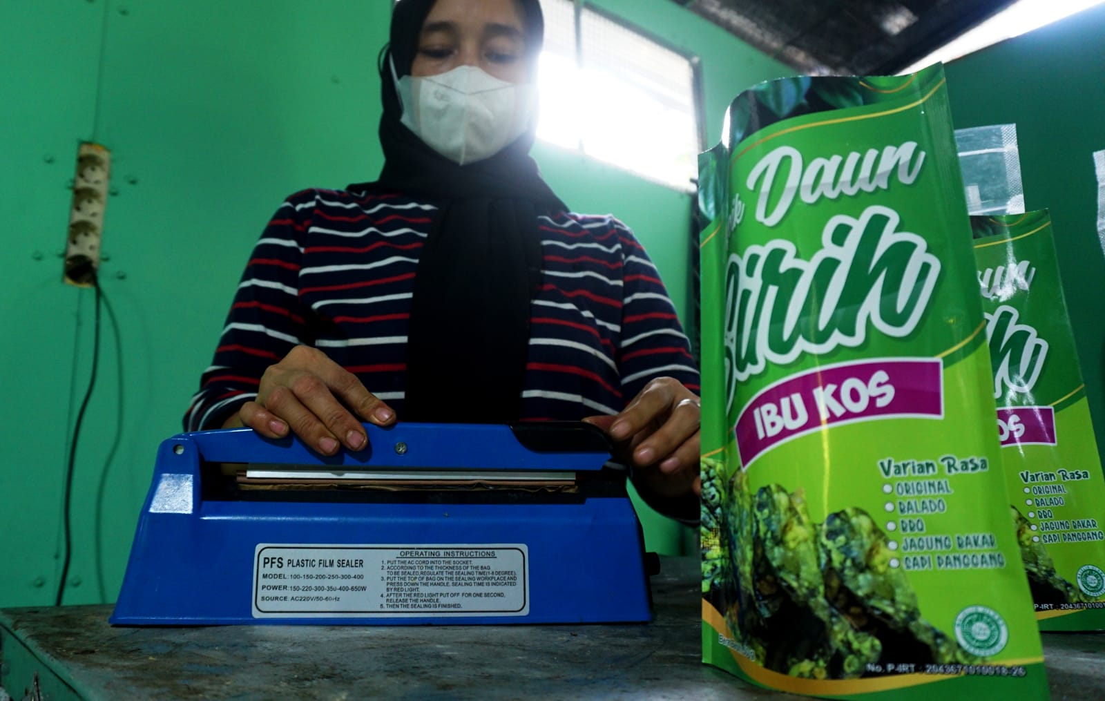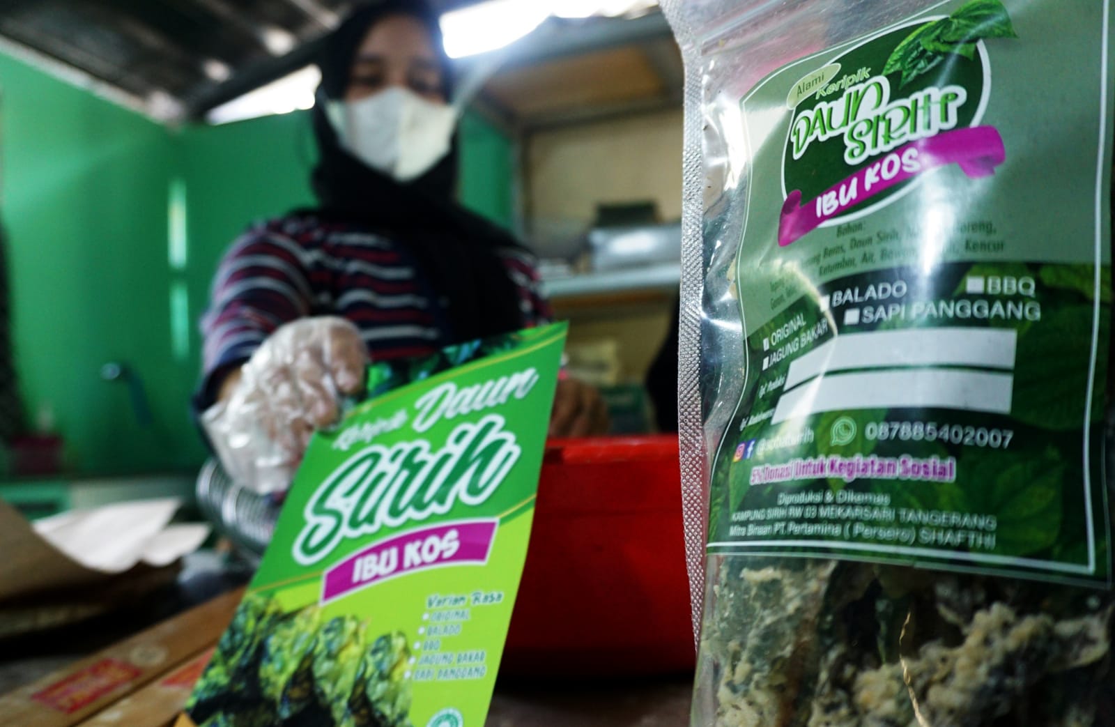 Kelompok Wanita Tani (KWT) yang tergabung dengan Kelompok Olahan Sirih (KOS) Kelurahan Mekarsari Kecamatan Neglasari Kota Tangerang. Manfaatkan Daun Sirih menjadi kripik. Dalam pembuatan kripik sirih tersebut mereka memanfaatkan lahan yang ada di kelurahan untuk menanam bahan baku tersebut. Produk kripik sirih ini bisa kita dapatkan langsung di Galeri Produk UMKM Kelurahan Mekarsari Kota Tangerang. Senin (16/5/22). Banten Aktual/Dennys