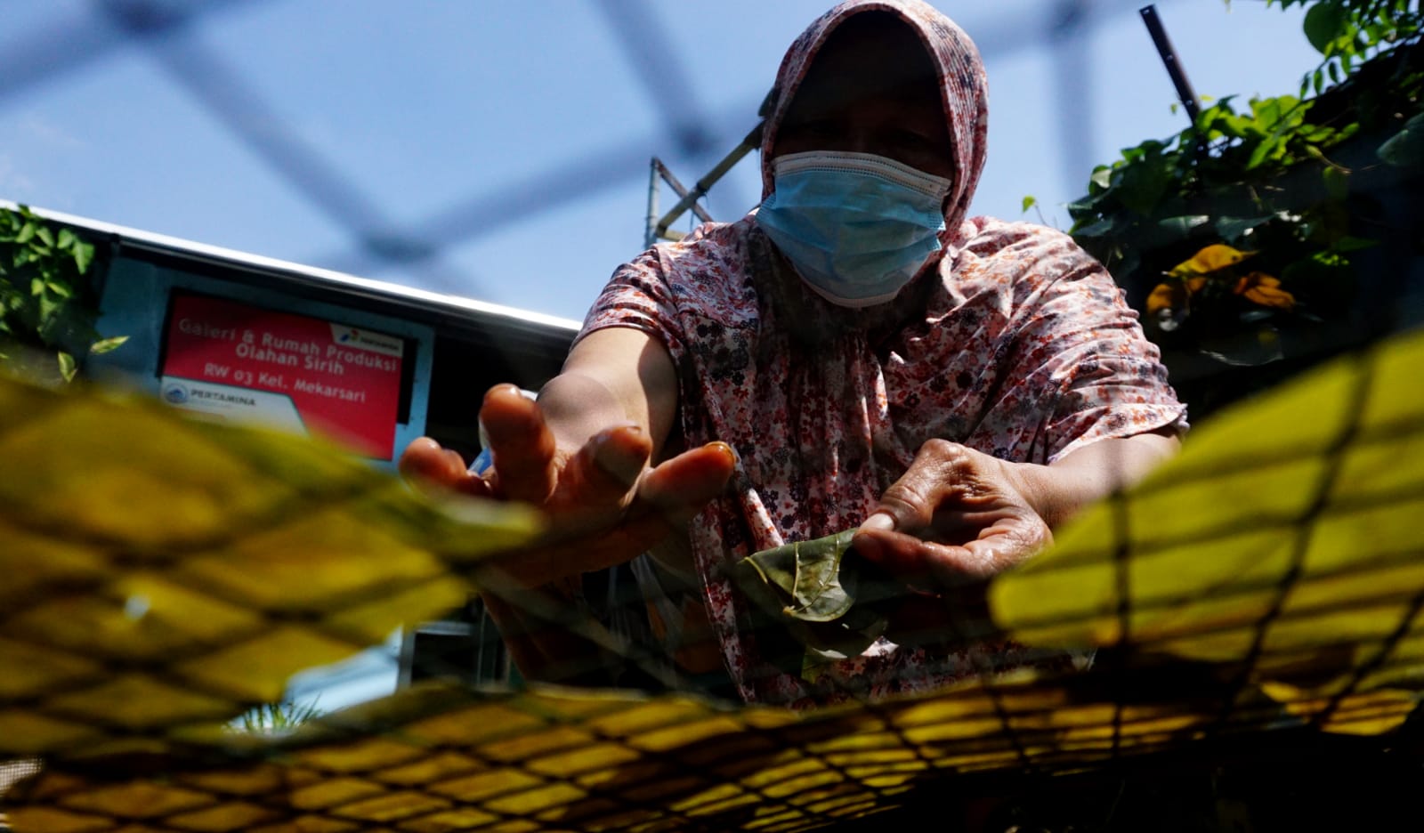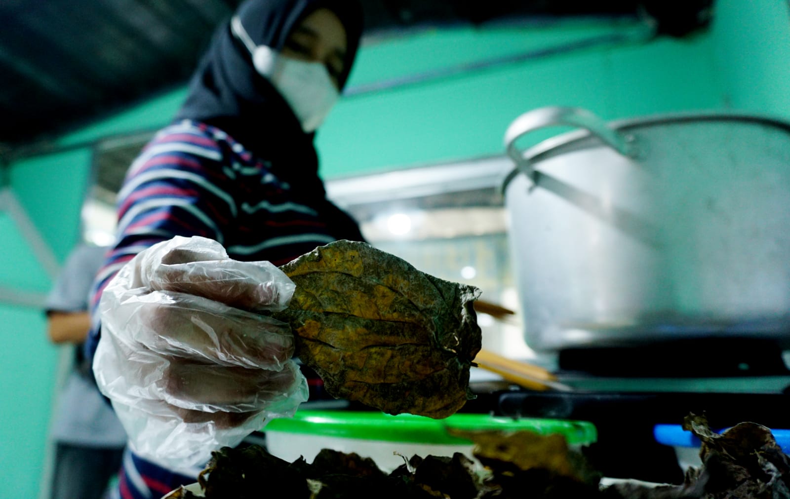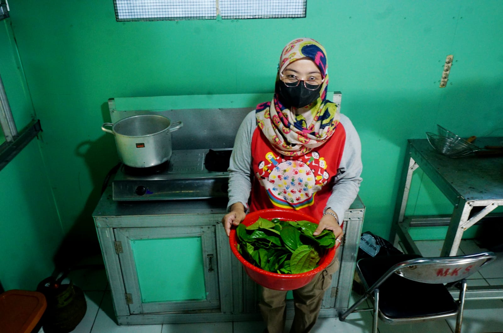 Kelompok Wanita Tani (KWT) yang tergabung dengan Kelompok Olahan Sirih (KOS) Kelurahan Mekarsari Kecamatan Neglasari Kota Tangerang. Manfaatkan Daun Sirih menjadi kripik. Dalam pembuatan kripik sirih tersebut mereka memanfaatkan lahan yang ada di kelurahan untuk menanam bahan baku tersebut. Produk kripik sirih ini bisa kita dapatkan langsung di Galeri Produk UMKM Kelurahan Mekarsari Kota Tangerang. Senin (16/5/22). Banten Aktual/Dennys