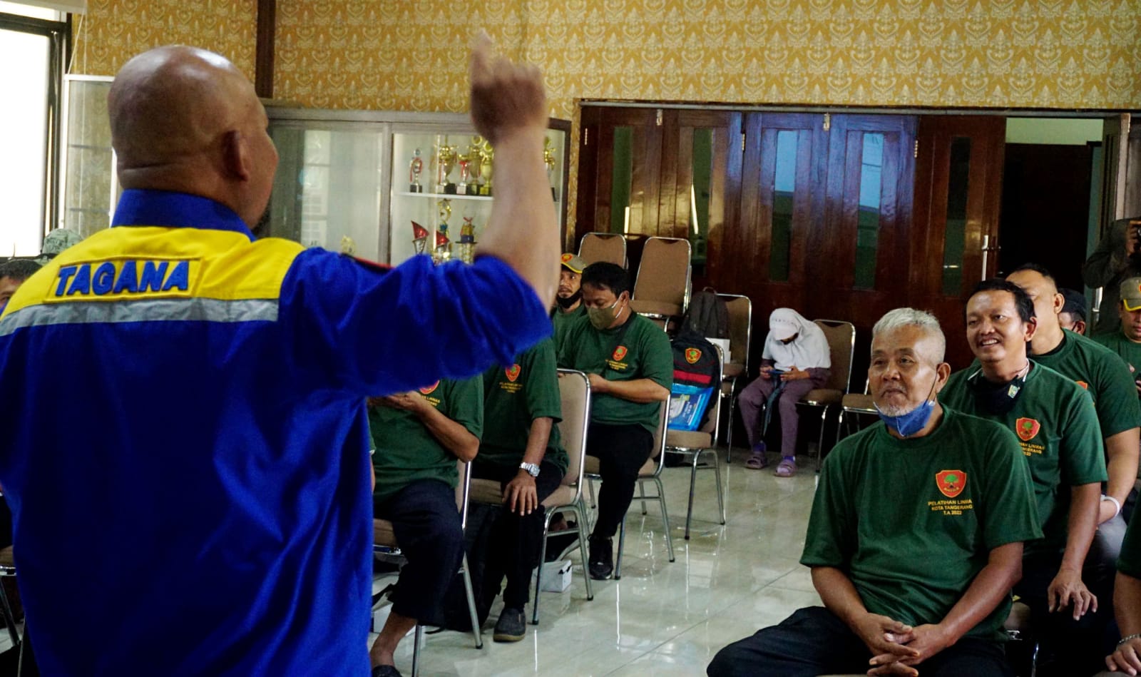 Satuan Tugas Polisi Pamong Praja (SATPOL PP). Kota Tangerang adakan pelatihan kesiap siagaan dalam penanggulangan Bencana bagi Satuan Tugas Perlindungan Masyarakat (SATLINMAS) yang ada di Kota Tangerang. Dalam pelaksanaan kegiatan tersebut para linmas yang ada di kelurahan di berikan pembekalan dalam menangani bencana diwilayahnya masing-masing. Tampak terlihat dalam acara tersebut Satpol PP bekerjasama dengan TNI, Tagana dan PMI Kota Tangerang sebagai narasumber pembekalan. Selasa (21/6/22). Banten Aktual/Dennys