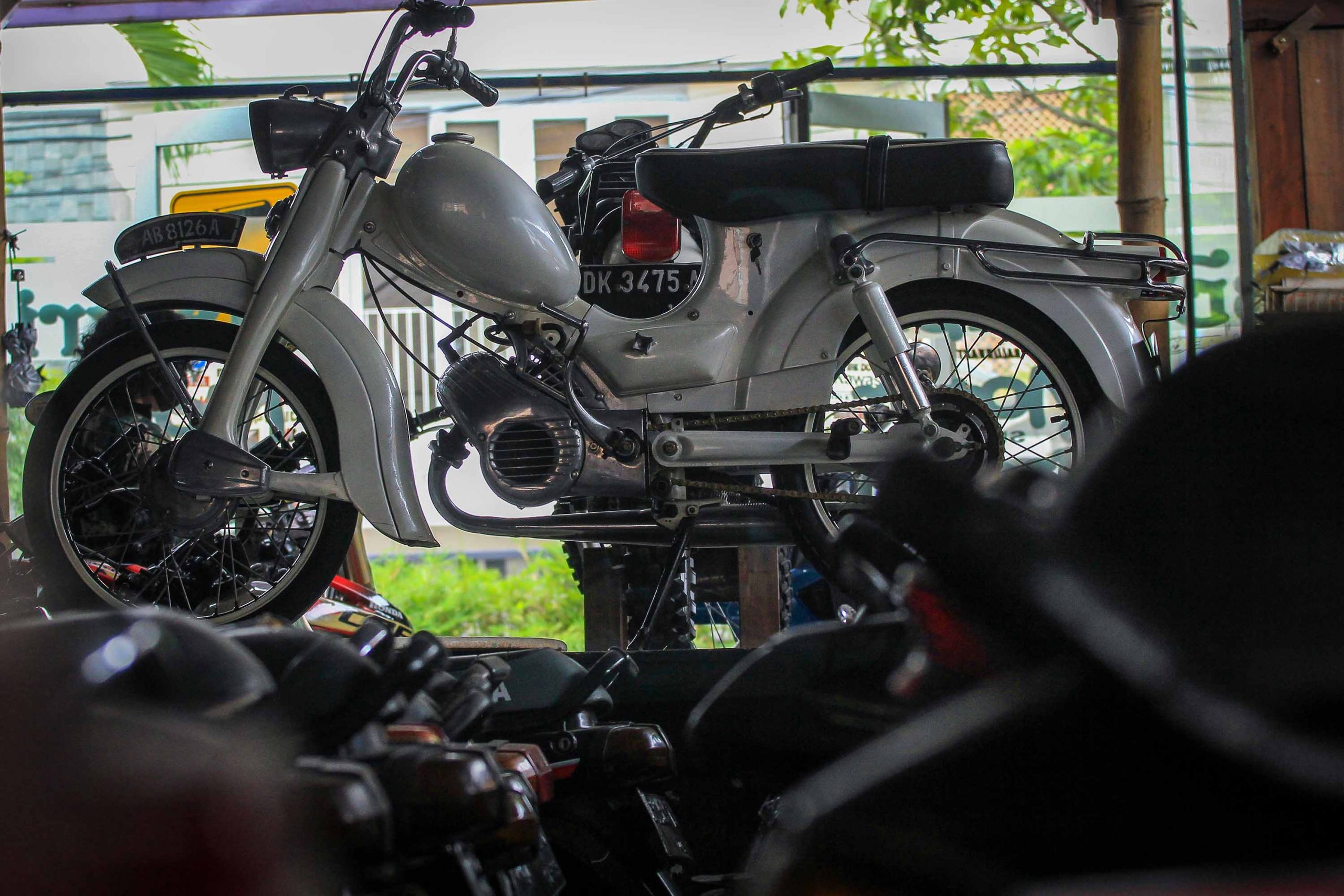 Herman Gunawan, mekanik Galery Motor Jadul di kawasan Pondok Cabe, Kota Tangerang Selatan, sedang memeriksa kondisi motor dua antik yang dipesan konsumen, Kamis (27/1/2022). Meskipun sepeda motor yang dijual di tokonya sudah berusia lanjut, keluaran tahun 1950 hingga 1990, tapi harga jualnya masih bernilai tinggi, karena terbilang barang antik yang banyak diincar para penggemar dan kolektor sepeda motor jadul yang umumnya berasal dari daerah di Jawa Timur yang dijual dengan harga antara Rp3 juta sampai Rp150 juta per unit. Banten Aktual/Cecep