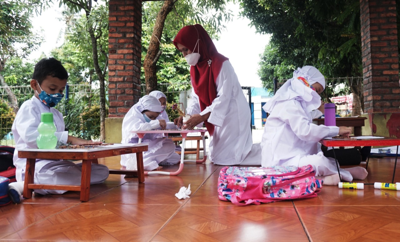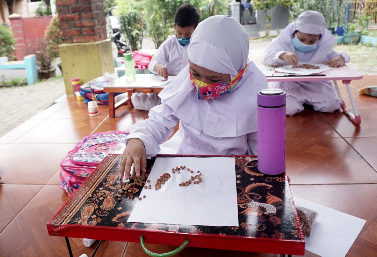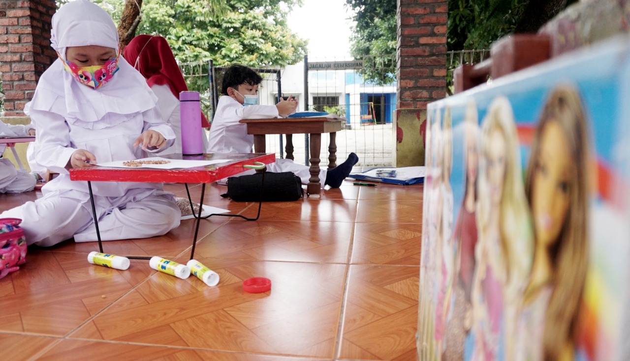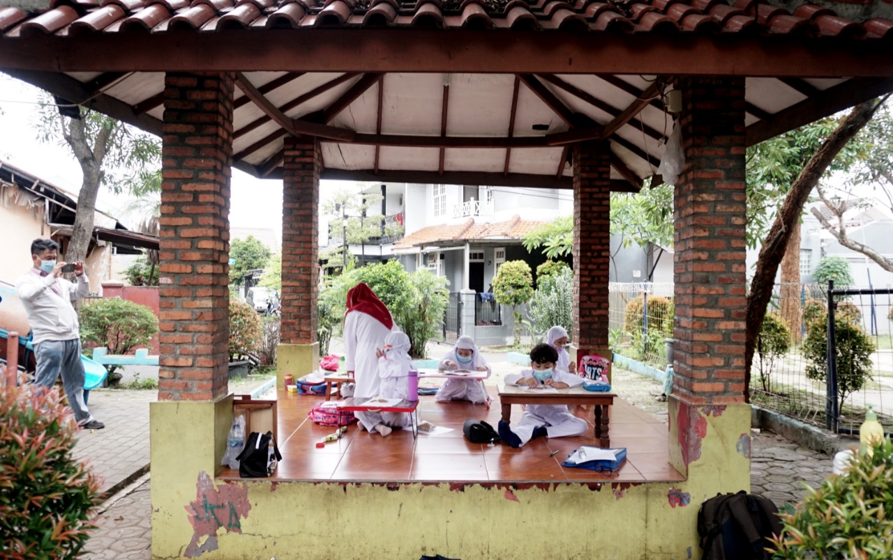 Foto: Para Murid Terpaksa Belajar di Emperan