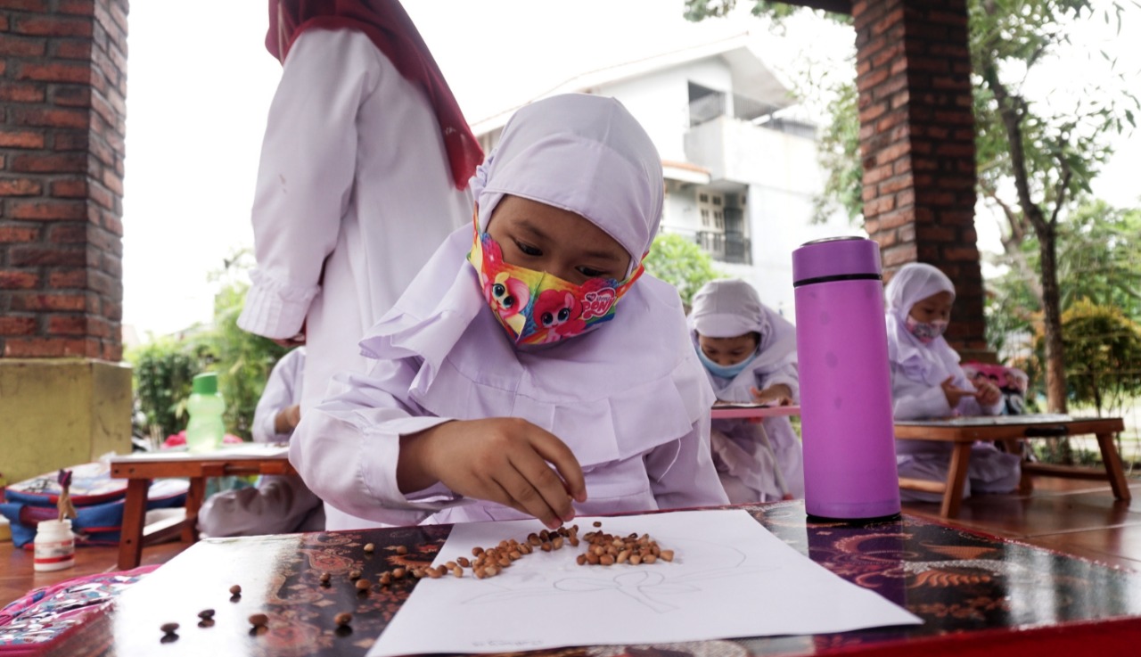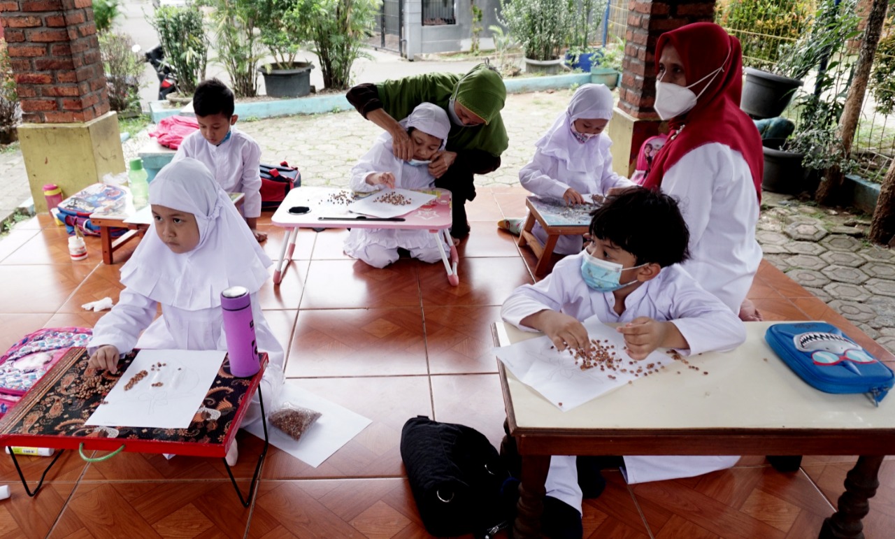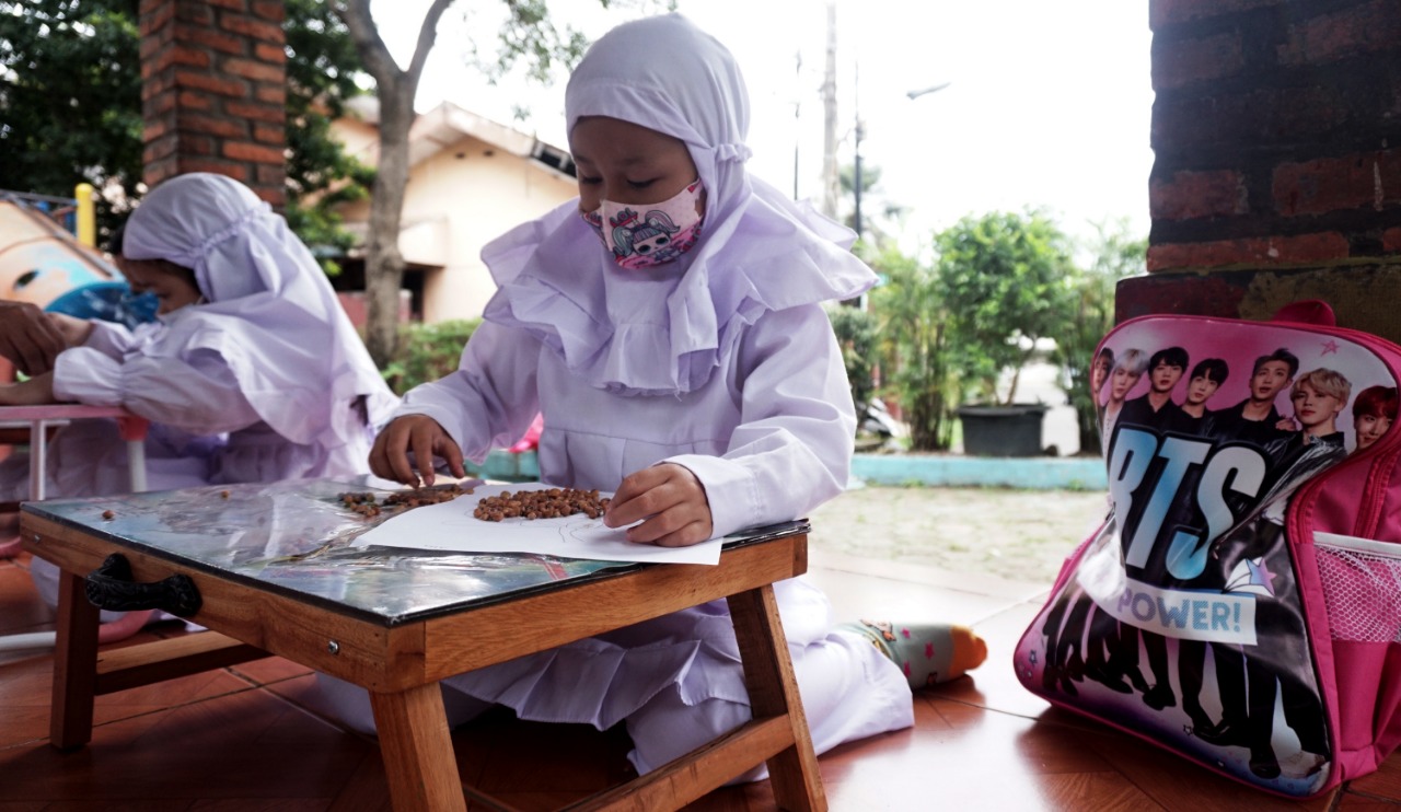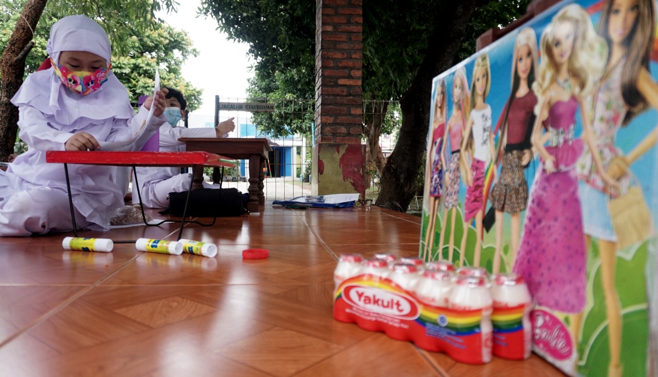 Foto: Para Murid Terpaksa Belajar di Emperan