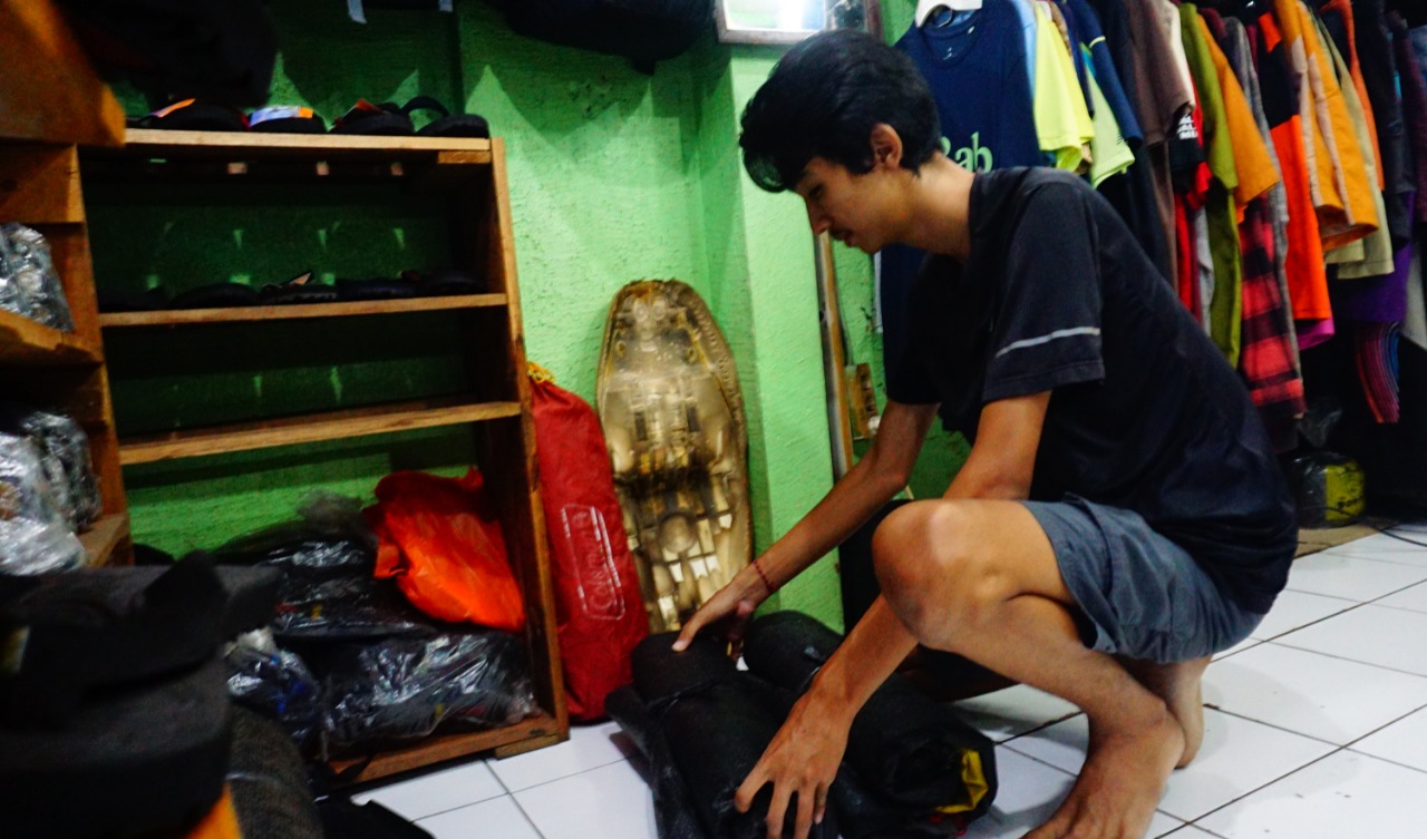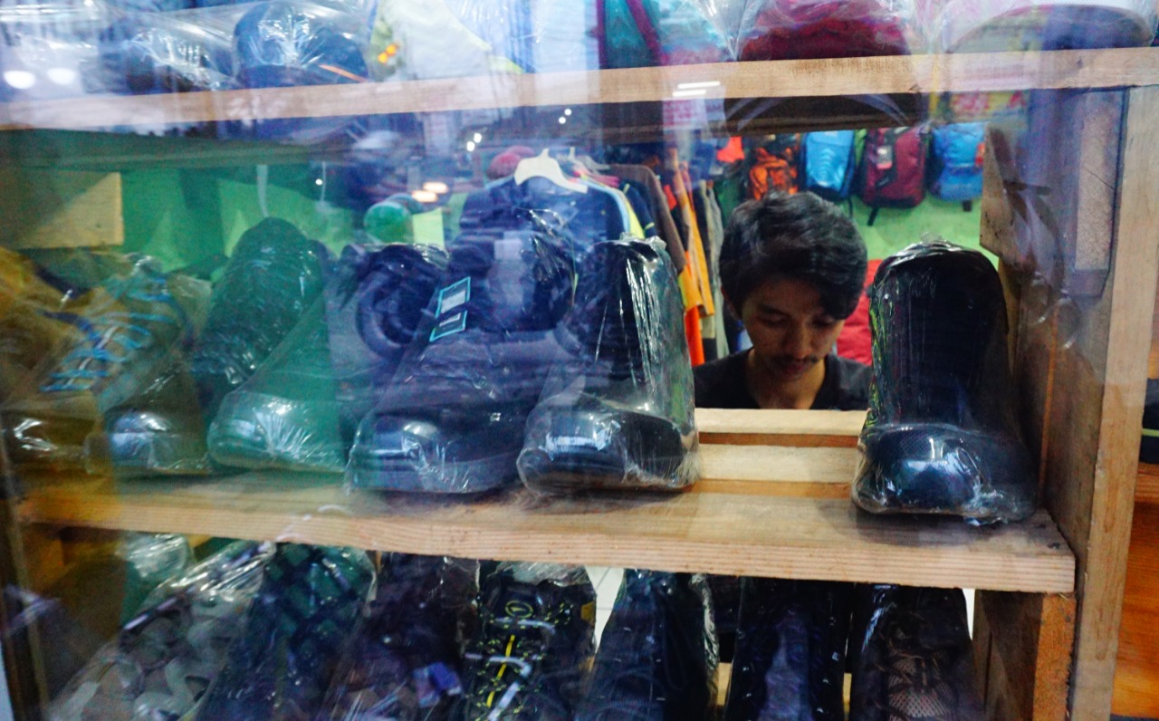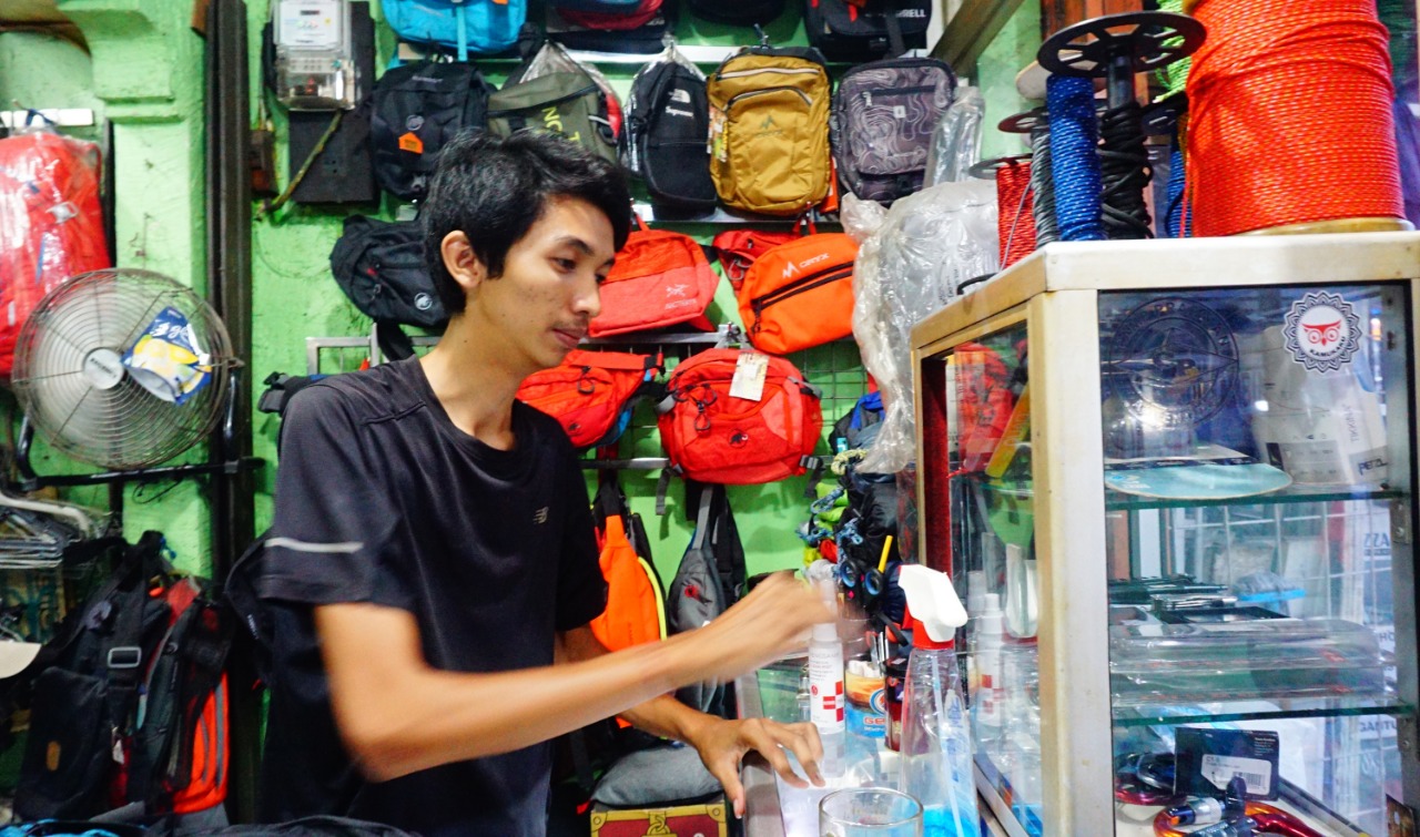 Semenjak pemerintah melonggarkan tempat wisata pengusaha peralatan camping (Outdoor Store) kembali mengalami peningkatan, hal tersebut dirasakan oleh Banox pemilik toko Camp Perapatan Kelurahan Tugu Kecamatan Cimanggis Kota Depok bersyukur atas kembalinya tempat wisata terutama wisata gunung dan tempat camping. Minggu (3/10/21). Banten Aktual/Dennys