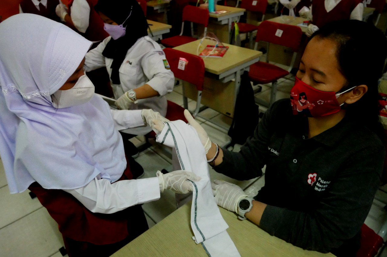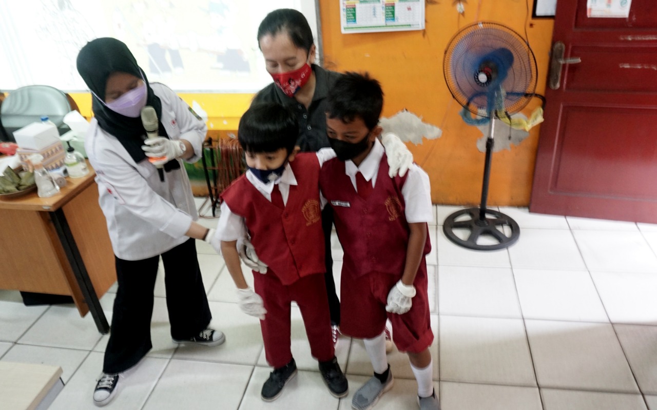 Sebanyak 20 Siswa-siswi Sekolah Dasar Negeri (SDN) Kunciran 8 Kecamatan Pinang Kota Tangerang mendapat pelatihan Pertolongan Pertama Pada Kecelakaan (P3K) oleh Palang Merah Indonesia (PMI) Kota Tangerang. Kegiatan tersebut menjadi satu program Dinas Kesehatan Kota Tangerang melalui Pusat Kesehatan Masyarakat (Puskesmas) Kunciran, mengenal dan melakukan pertolongan pertama menjadi satu pelajaran penting bagi para siswa SD terutama di lingkungan sekolah nya sendiri terutama di tengah pandemi saat ini. Selasa (26/10/21). Banten Aktual/Dennys