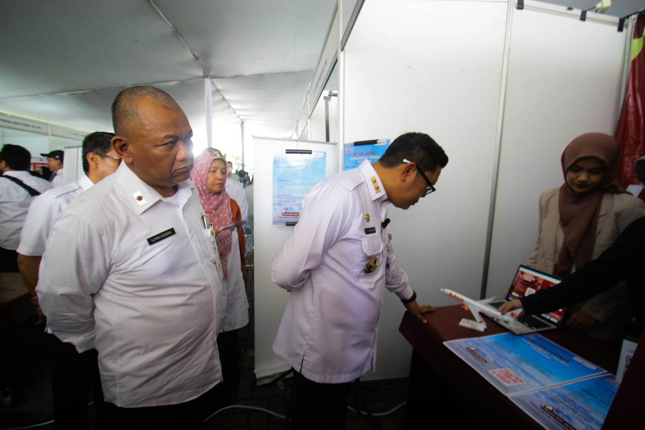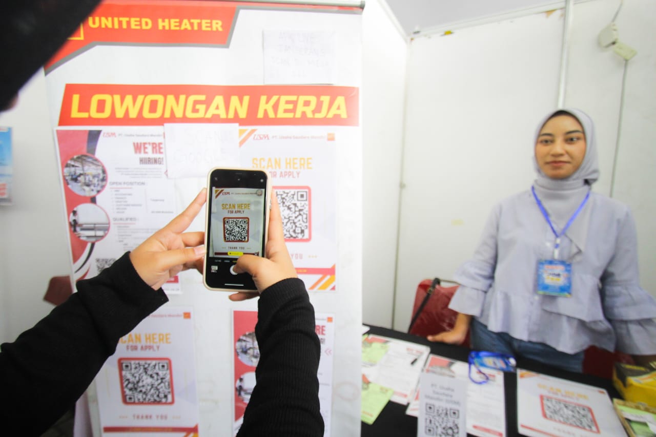 Pemerintah Kota Tangerang melalui Dinas Ketenagakerjaan (Disnaker) kembali menunjukkan komitmennya dalam memperluas kesempatan kerja bagi warganya. Melalui program unggulan Job Fair 2025, Disnaker Kota Tangerang menghadirkan ribuan peluang kerja dari dalam dan luar negeri, yang digelar selama dua hari, 23 hingga 24 April 2025 di Tangcity Mall. Tampak terlihat Wakil Walikota Maryono Hasan sedang berbincang dengan para pelamar Disabilitas (Rungu) di lokasi acara Job Fair. Rabu (22/04/25). Banten Aktual/Dennys