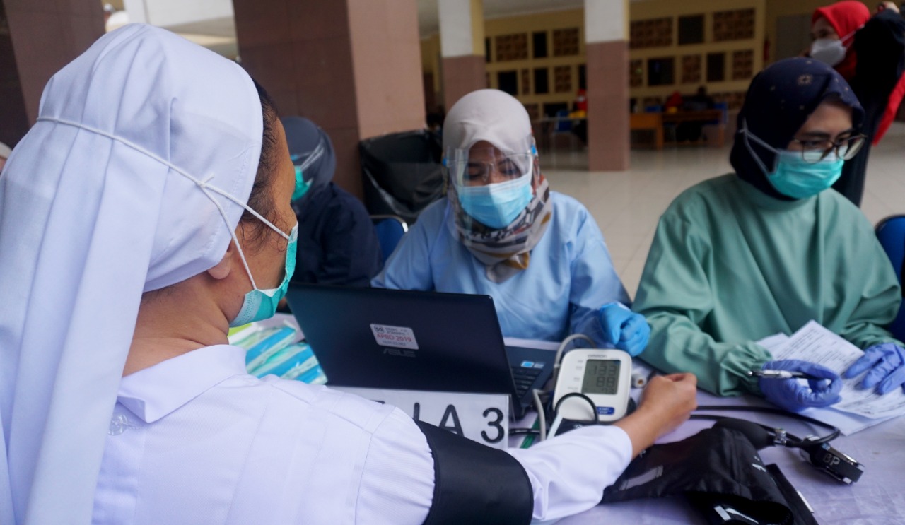 Pemerintah Kota Tangerang kembali mengadakan Vaksinasi kedua. Sejumlah Petugas Pelayanan Publik kembali menerima Vaksin yang kedua Kalinya, para rohaniawan (Suster) Gereja sedang melakukan Vaksinasi kedua di Gedung Pemerintahan Kota Tangerang oleh Dinas Kesehatan. Jumat (12/3/21). Banten Aktual/Dennys
