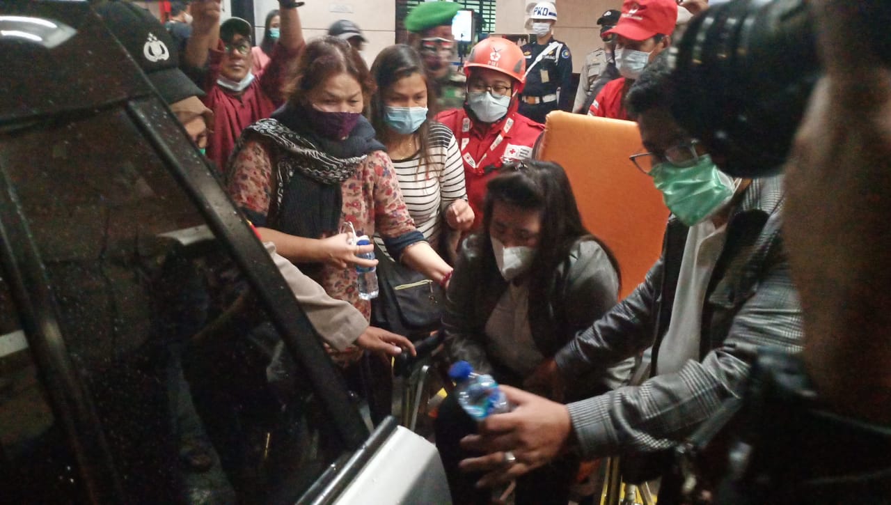 Tim PMI KOTA TANGERANG membantu evakuasi keluarga korban jatuhnya pesawat Sriwijaya Air 182 yang mengalami syok di Posko Crisis Center Bandara Soekarno-Hatta, (9-1-21). Banten Aktual/PMI Kota Tangerang/Cecep