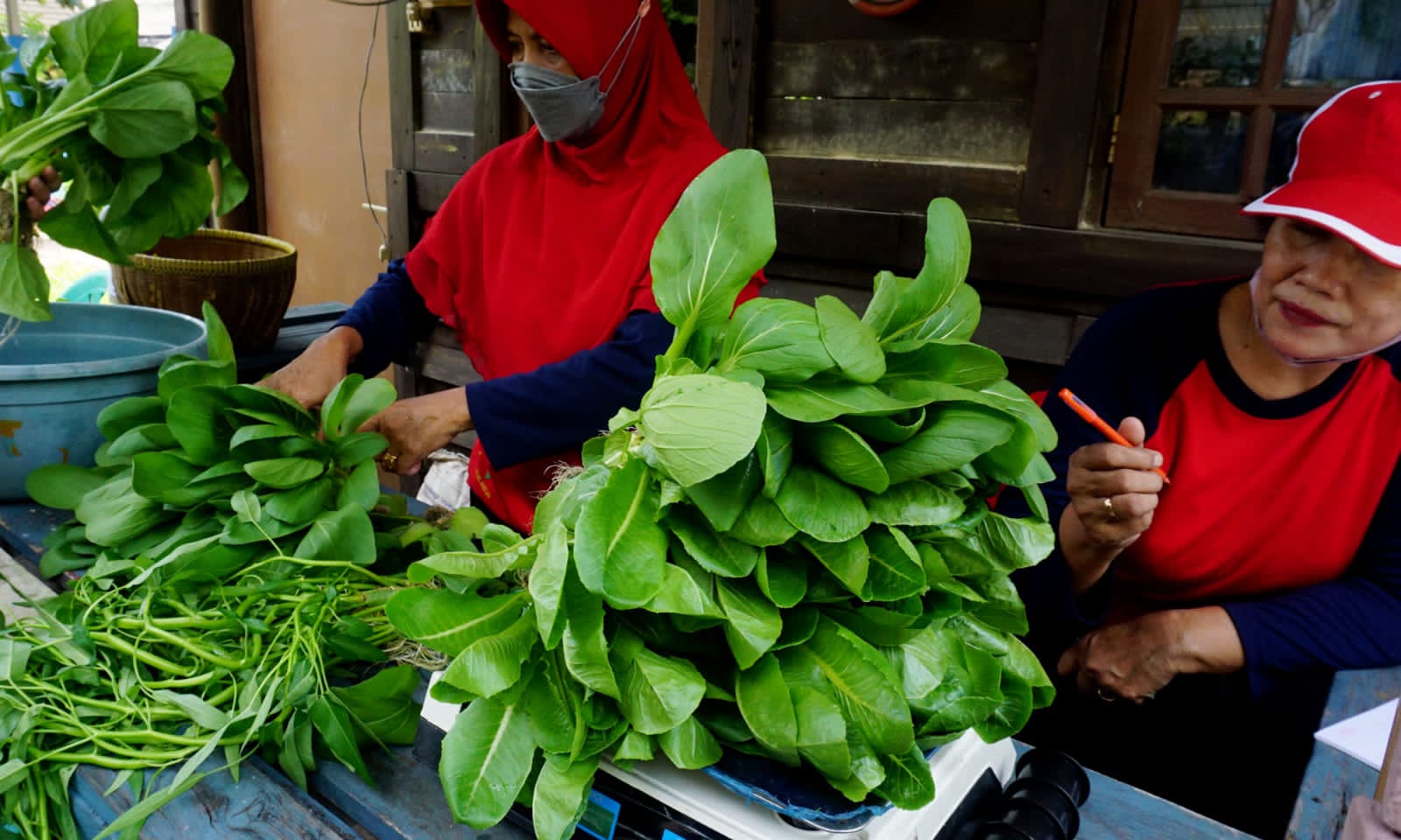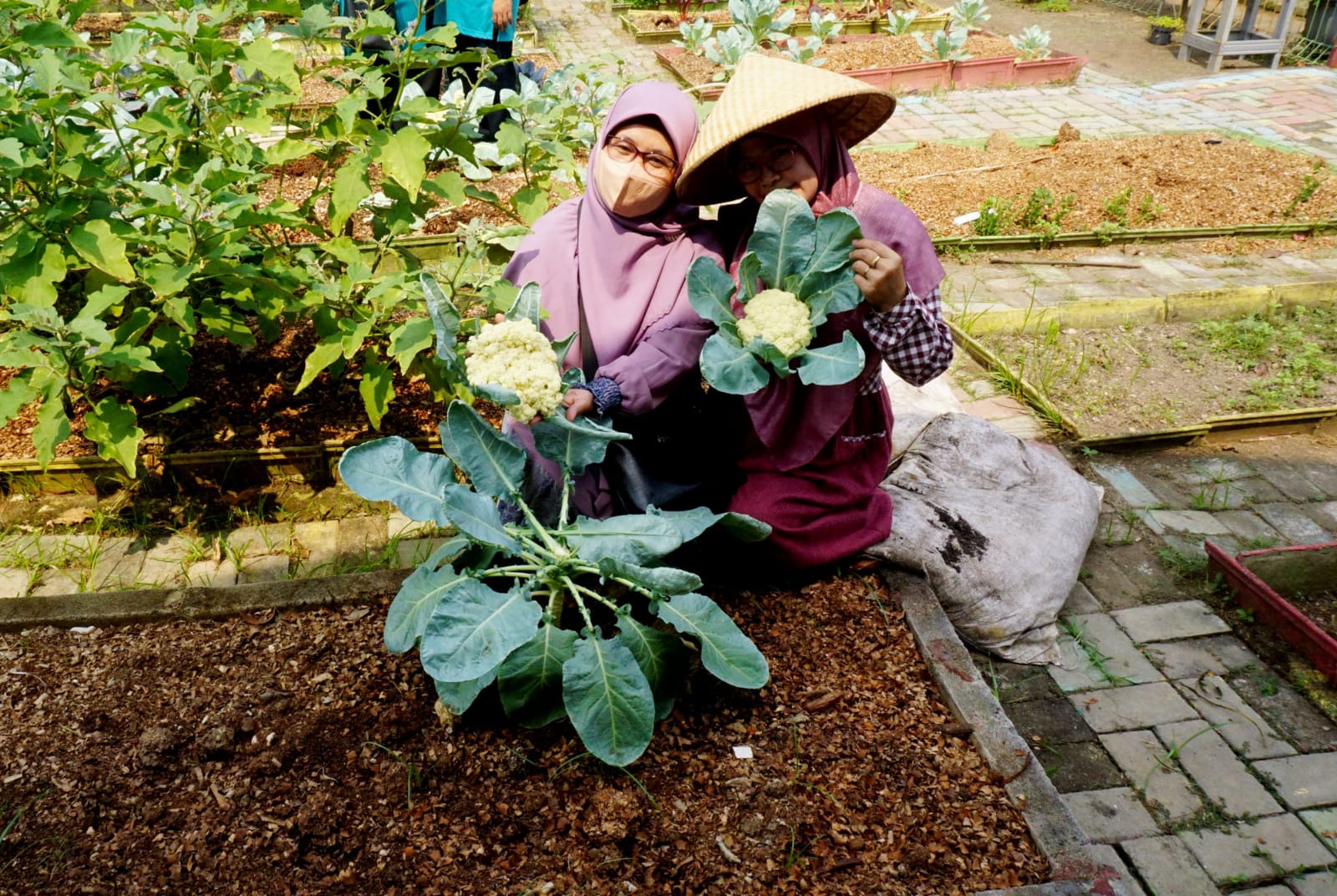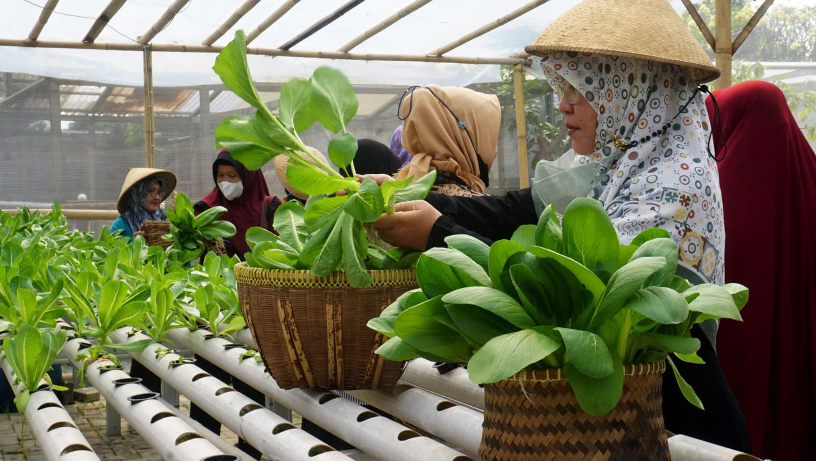 Puluhan Ibu-ibu dari berbagai wilayah mendatangi perkebunan sayur untuk dapat membeli sayur segar hidroponik yang langsung dapat memetik sendiri dari ladangnya. Panen Raya Kelompok Wanita Tani Anturium yang ada di Perumahan Pondok Arum RW.03 Kelurahan Nambo Jaya Kecamatan Karawaci Kota Tangerang ini menjadi satu KWT percontohan bagi KWT yang ada di Kota Tangerang. Tampak terlihat Lurah Nambo Jaya bersama staffnya turut menghadiri acara panen raya tersebut. Kamis (30/6/22). Banten Aktual/Dennys