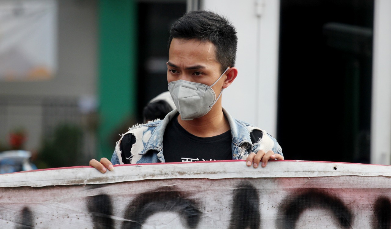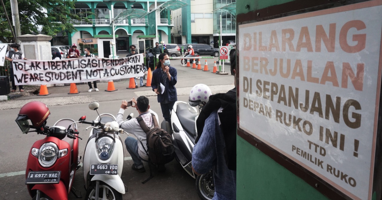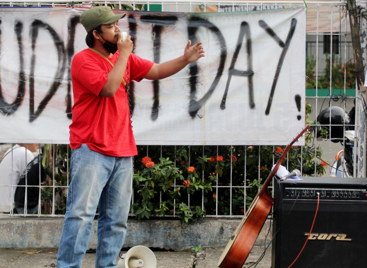 Internasional Student Day 2021 di warnai unjuk rasa mahasiswa Universitas Islam Syekh Yusuf (UNIS) Tangerang di Jalan Maulana Yusuf No.10 Kota Tangerang, sebanyak puluhan mahasiswa menuntut kepada pemerintah daerah maupun pusat untuk mewujudkan Pendidikan Gratis, Ilmiah dan Demokratis. Dalam aksi tersebut terlihat beberapa aparat keamanan baik dari kampus maupun Polisi melakukan penjagaan dan mengatur lalulintas agar tidak mengundang kemacetan. Rabu (17/11/21). Banten Aktual/Dennys