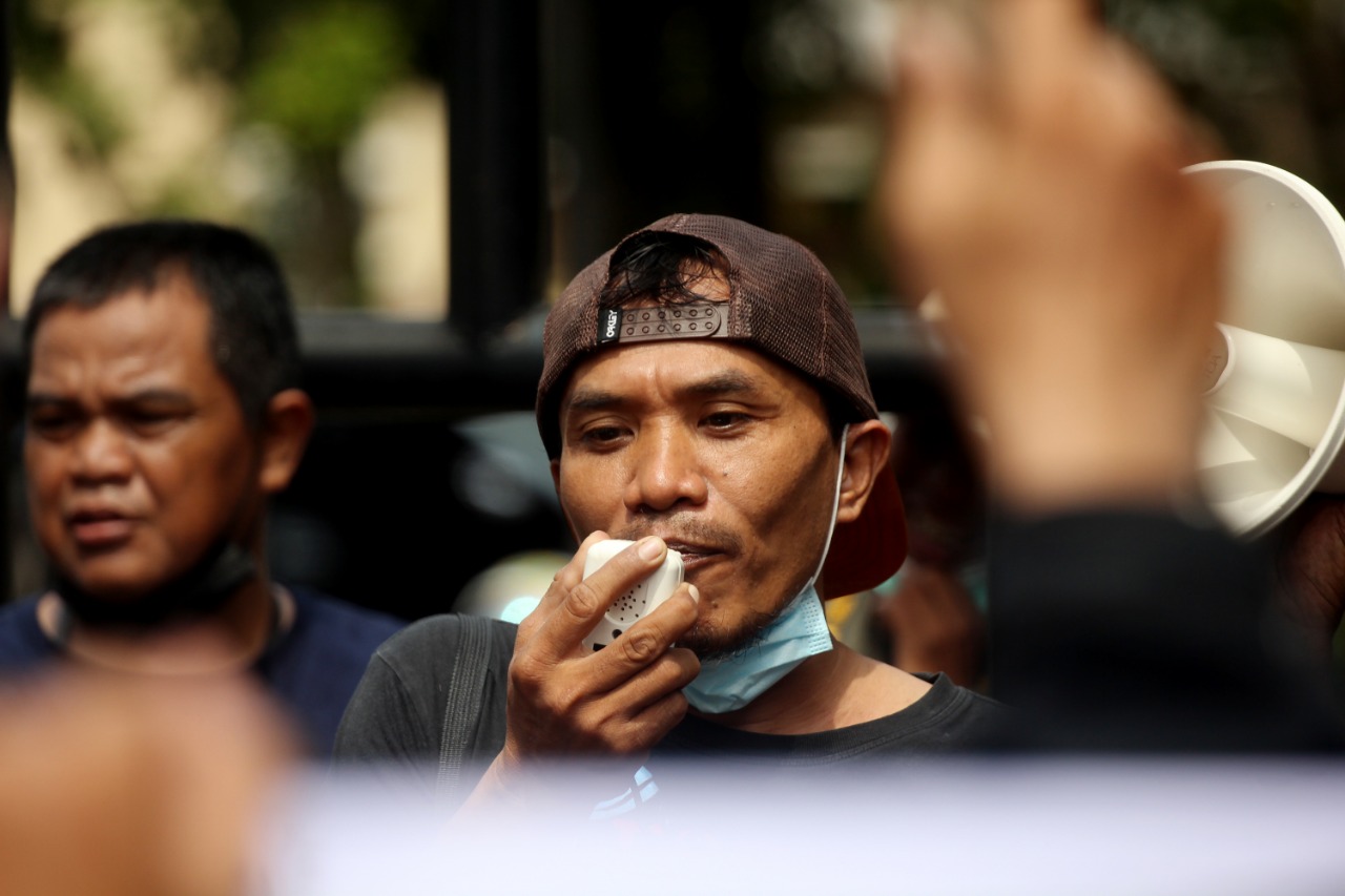 Jelang perayaan hari pers nasional (HPN) puluhan wartawan yang tergabung dengan Forum Wartawan Tangerang (Forwat) menggelar aksi di halaman Kantor Pemerintahan Kota Tangerang, dalam aksinya wartawan menuntut pihak kepolisian dan pemerintah untuk menghentikan tindak kekerasan, intimidasi dan kriminalisasi terhadap profesi wartawan saat mencari informasi (bertugas), terlihat kepala dinas komunikasi dan informasi Mulyani menerima para pendemo di halaman depan puspem (Pusat Pemerintahan). Rabu (9/2/22). Banten Aktual/Dennys