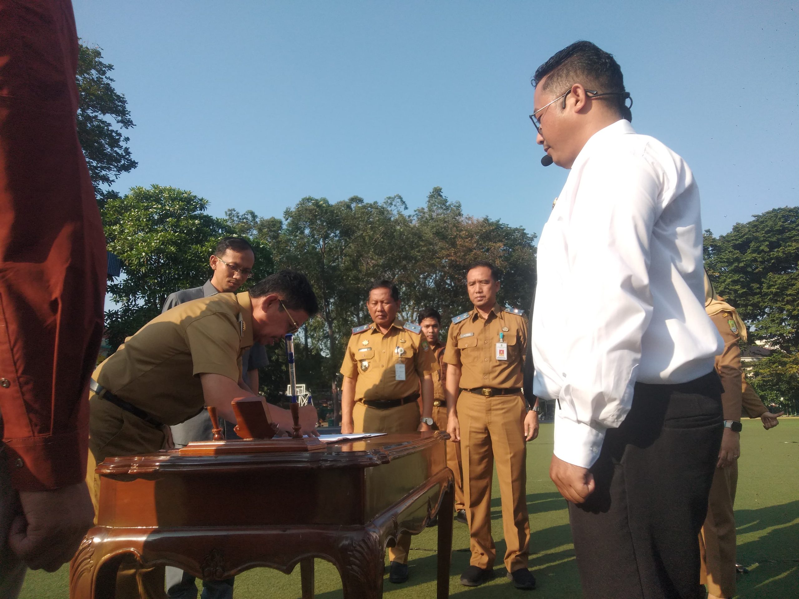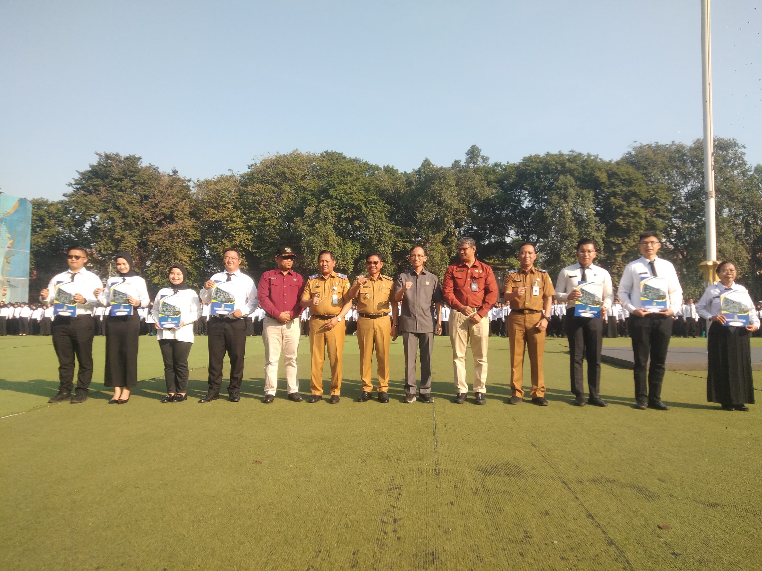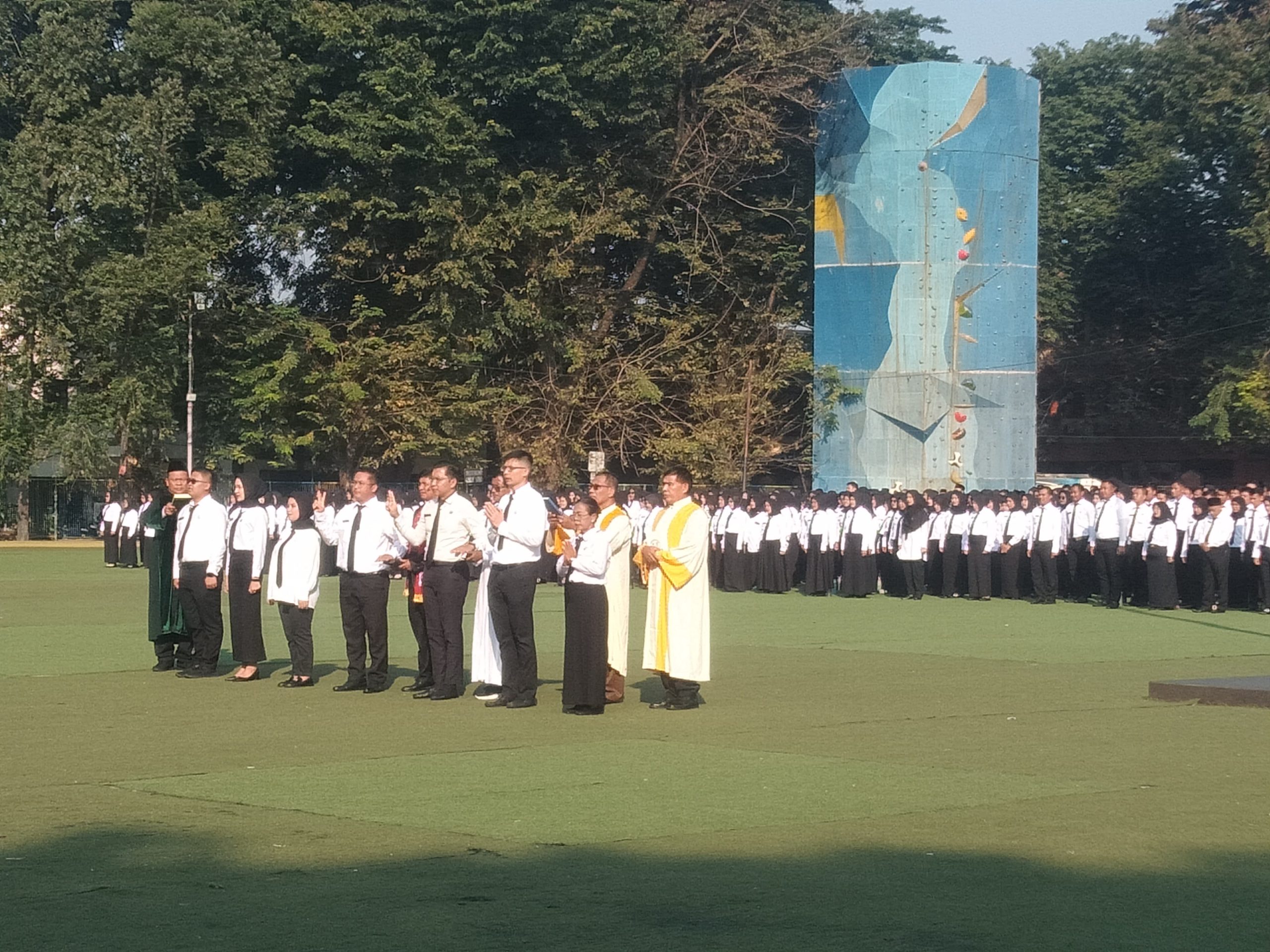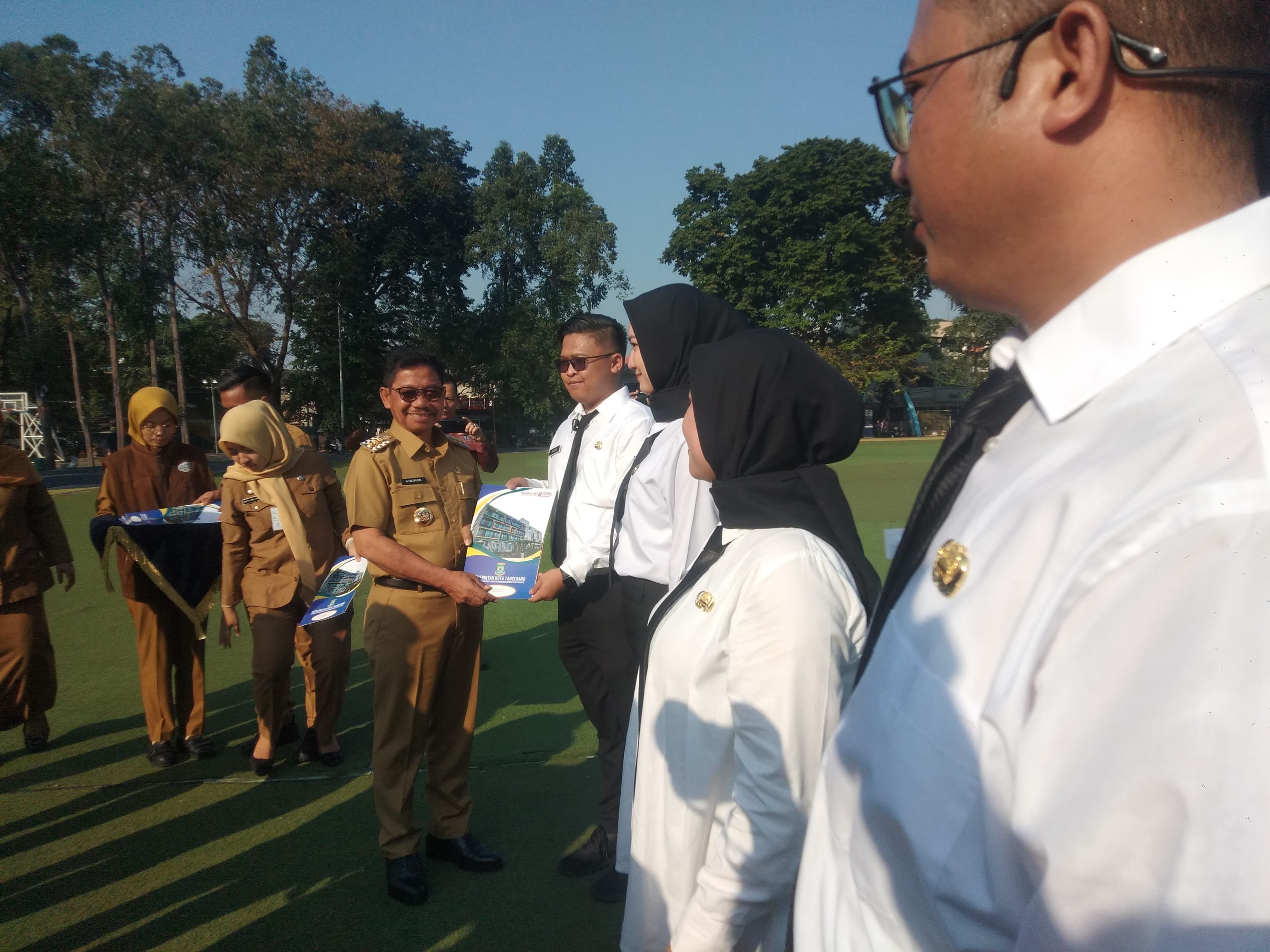 Pemerintah Kota (Pemkot) Tangerang baru saja menggelar prosesi pelantikan Pegawai Pemerintah dengan Perjanjian Kerja (PPPK) untuk jabatan fungsional di lingkungan Pemkot Tangerang secara resmi di Alun-Alun Ahmad Yani, Kota Tangerang. Wali Kota Tangerang Sachrudin menuturkan, Pemkot Tangerang berhasil menyerahkan Surat Keputusan (SK) kepada 3.419 PPPK yang terdiri dari 1.553 pegawai di bidang tenaga teknis, 1.7552 pegawai di bidang tenaga pendidikan dan 114 pegawai di bidang tenaga kesehatan selama prosesi pelantikan pagi tadi. Senin (05/05/25). Banten Aktual/Dennys