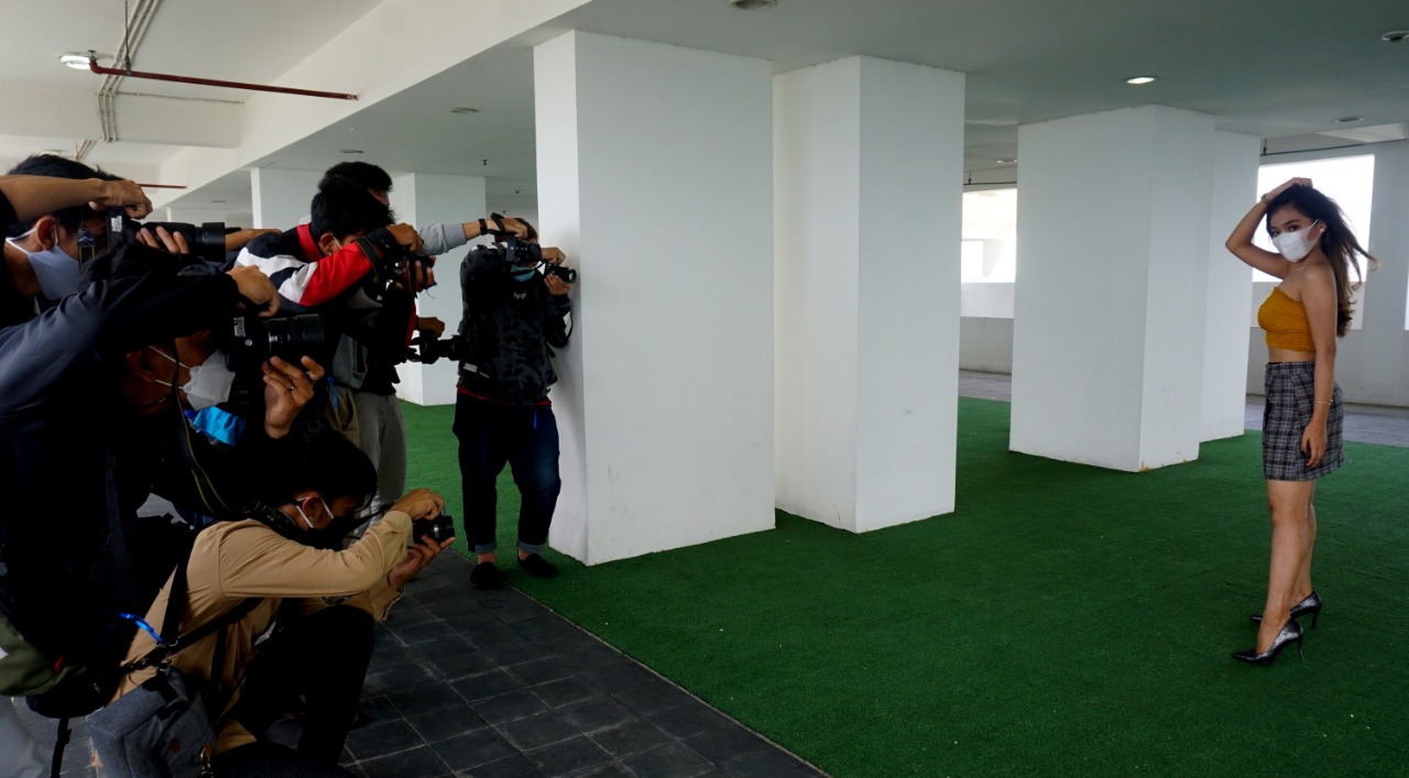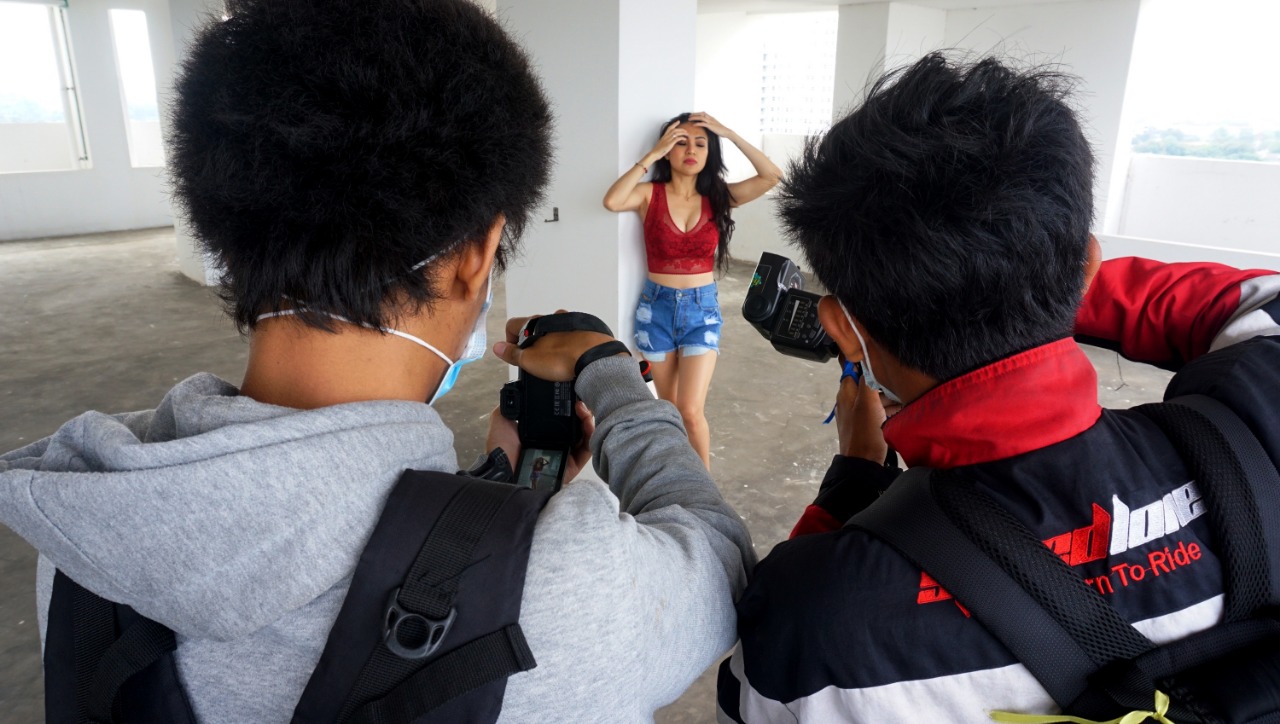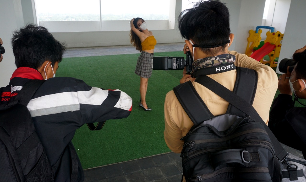 Puluhan Fotografer sedang mengabadikan model yang menjadi target bidikanya, acara yang digelar oleh komunitas Modeltangerang.id dan bekerja sama dengan Urban Express Homtel yang berada di Tangerang Selatan ini menjadi satu bukti semangat para penghobi Fotography untuk tetap berkarya di tengah Pandemi saat ini. Dalam pelaksanaan acara tersebut panitia tetap menjalankan Protokol Kesehatan dengan mewajibkan para Fotografer untuk tetap menggunakan Masker. Minggu (14/3/21). Banten Aktual/Dennys