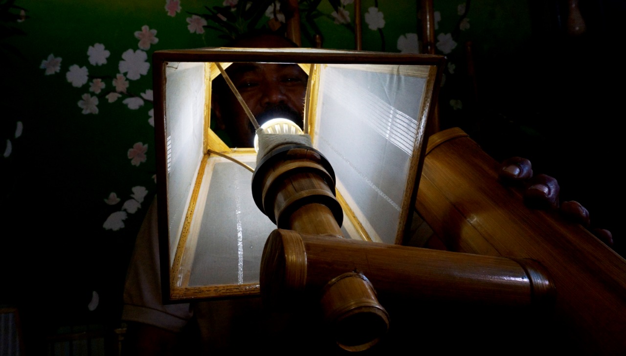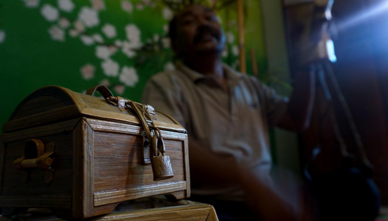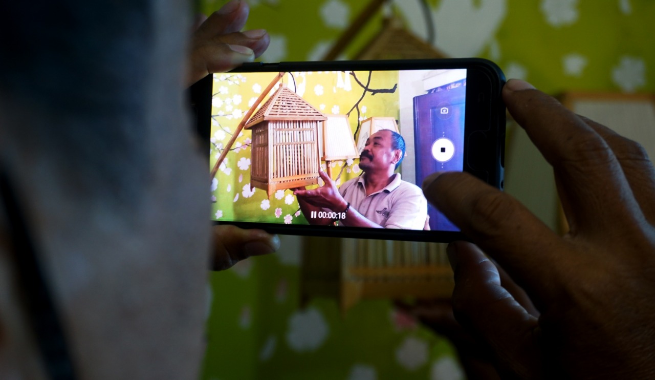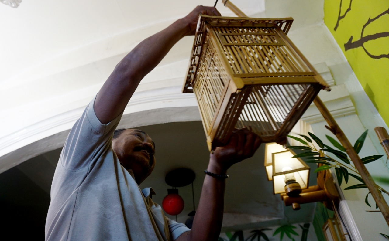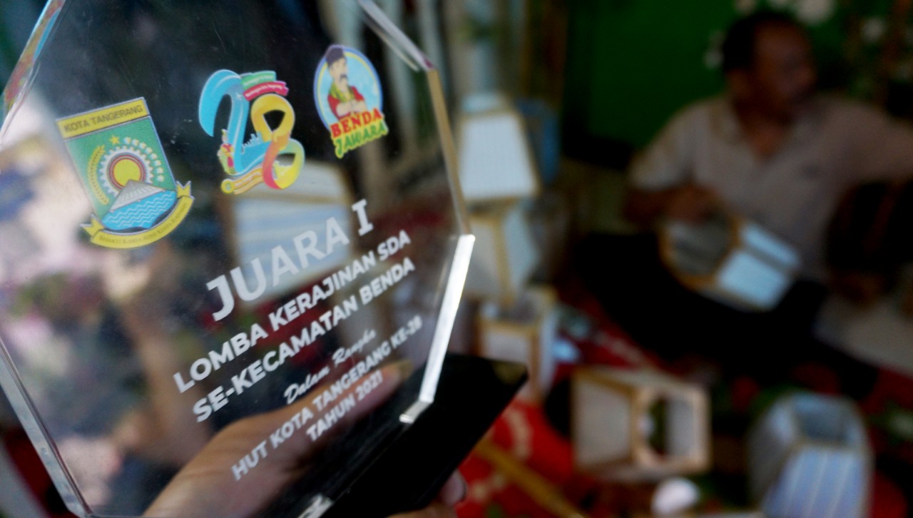 Nana Suryana (52) pengrajin Lampion sedang mengerjakan Lampion pesanan Konsumen di Rumahnya. Kelurahan Pajang, Kecamatan Benda, Kota Tangerang. Lampion hasil karyanya di bandrol dengan harga bervariasi mulai dari Rp. 50.000-1000.000,-. Hasil karya yang di ciptakan semuanya menggunakan limbah yang didapat dari daerah sekitar lingkungan kampungnya. Senin (8/3/21). Banten Aktual/Dennys