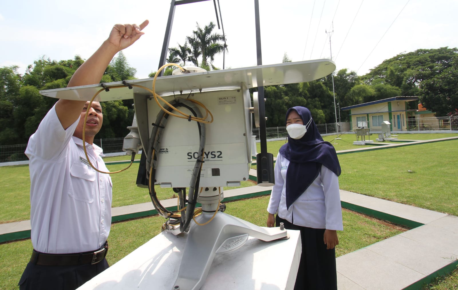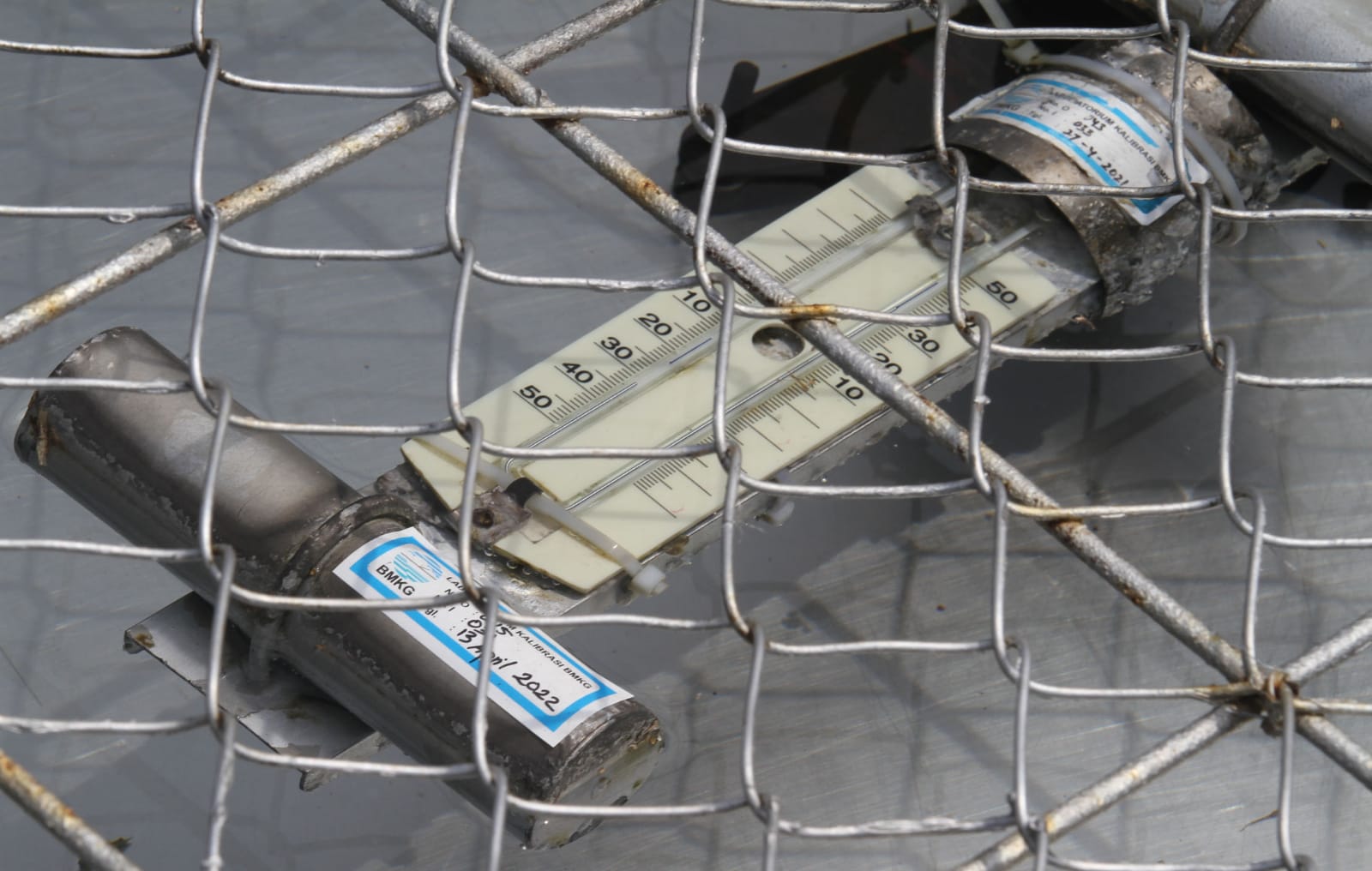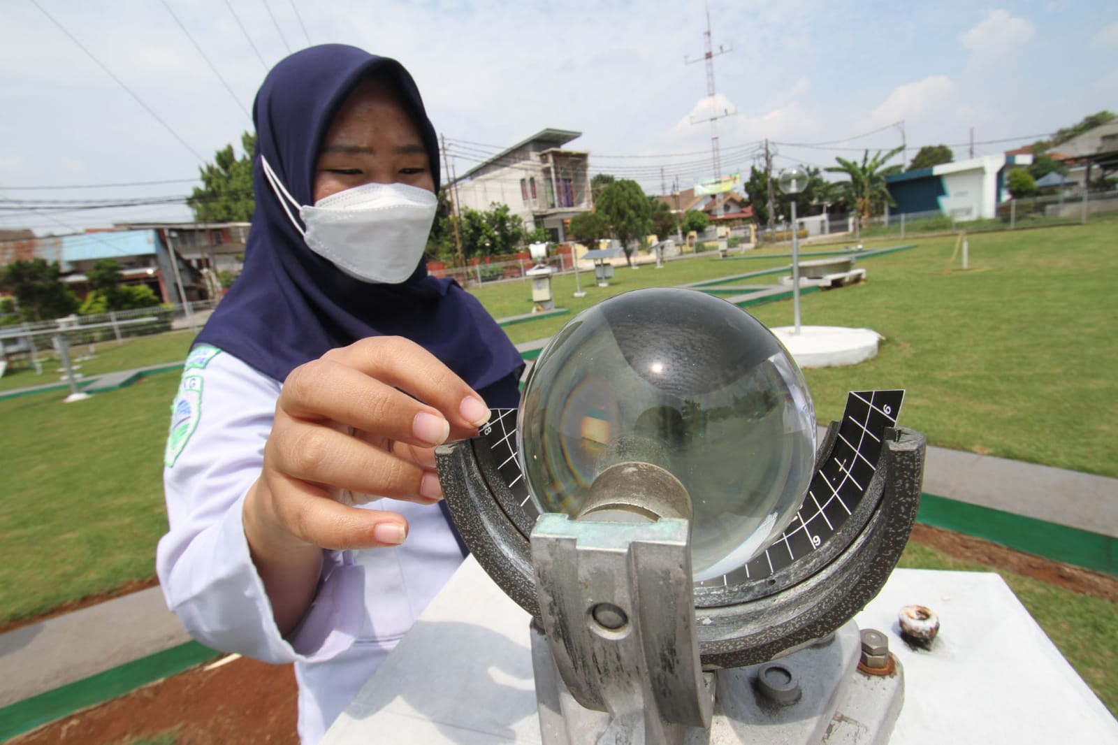 Petugas Stasiun Klimatologi BMKG Kelas II Tangerang Selatan melakukan pengmatan di Taman Alat Stasiun Klimatologi BMKG Pondok Betung, Tangerang Selatan, Banten. Berdasarkan data hasil pengamatan BMKG Pusat, suhu maksimum selama periode tanggal 1-7 Mei 2022 berkisar antara 33-36.1 derajat Celcius dengan suhu maksimum tertinggi mencapai 36.1 derajat celcius terjadi di wilayah Tangerang (Banten) dan Kalimarau (Kalimantan Utara), fenomena tersebut akan terjadi hingga beberapa hari ke depan. Rabu (11/5/22). Banten Aktual/Dennys