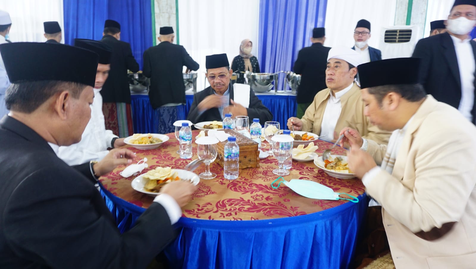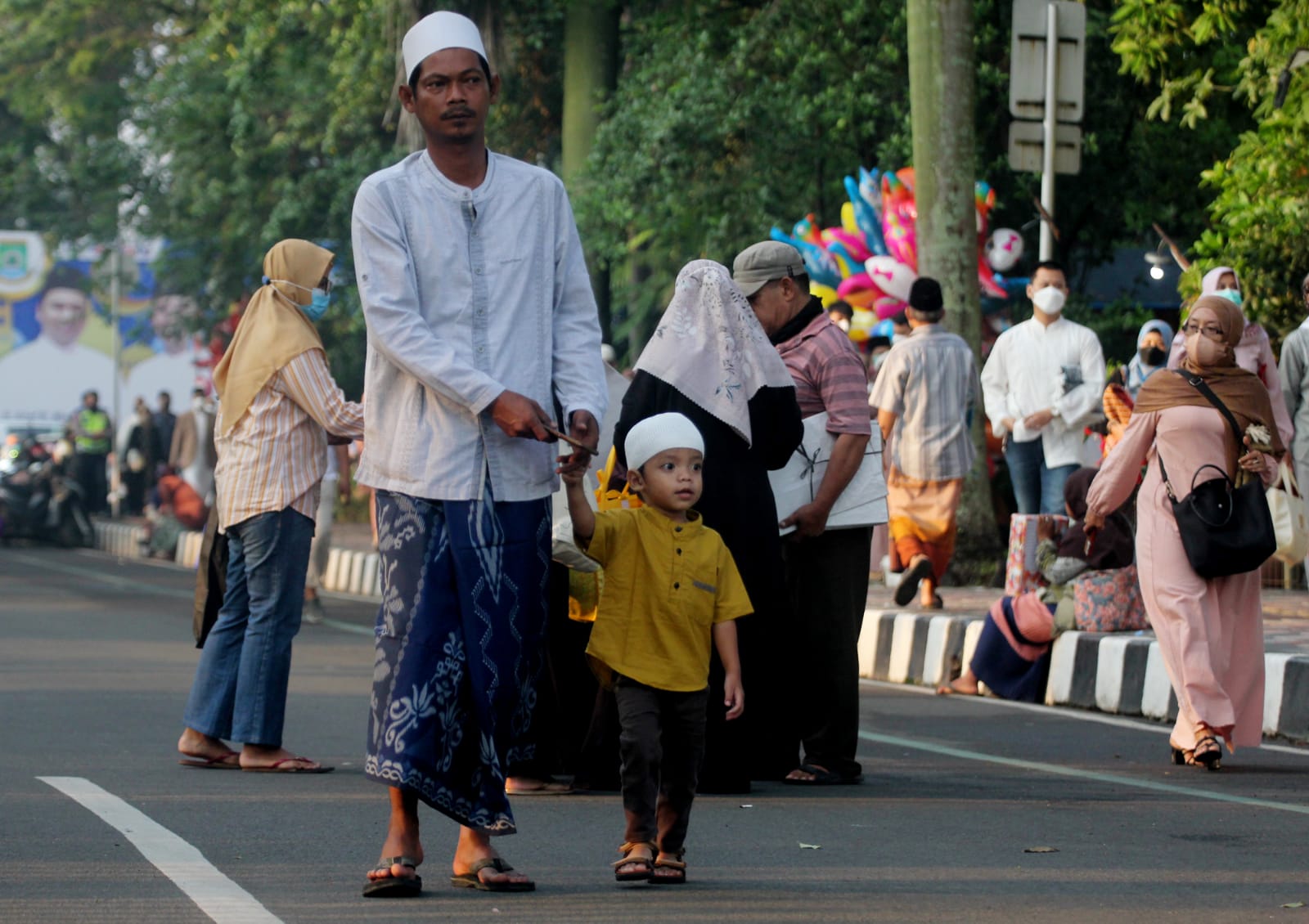 Dua tahun tidak melaksanakan Sholat Ied warga Kota Tangerang dengan antusias berbondong-bondong menuju Masjid Al Azhom di Pusat Pemerintahan Kota Tangerang, Terlihat usai melaksanakan sholat Ied Walikota beserta jajarannya bersilaturahmi dengan masyarakat dilanjutkan dengan makan ketupat bersama Forkopimda di belakang masjid Al Alzhom. Senin (2/5/22). Banten Aktual/Dennys