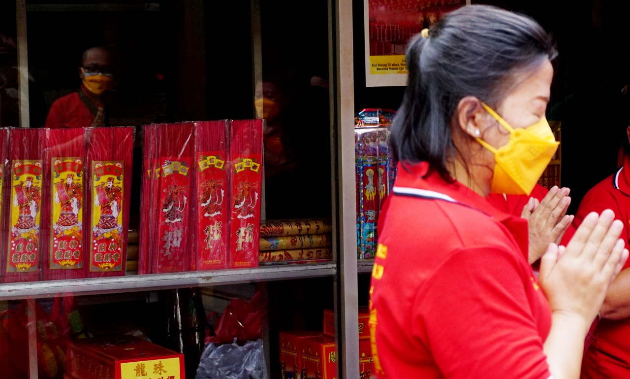 Umat Tri Darma Vihara Nimmala Boen San Bio bagikan Takjil bagi para pengguna jalan di depan kelenteng Jalan KS. Tubun Pasar Baru Kota Tangerang, sebanyak 1500 takjil di bagikan guna membantu warga dan pengguna jalan yang sedang menjalankan ibadah puasa untuk berbuka. Kegiatan tersebut menjadi satu nilai positif dalam menjalin toleransi antar umat beragama di Kota Tangerang. Sabtu (9/4/22). Banten Aktual/Dennys