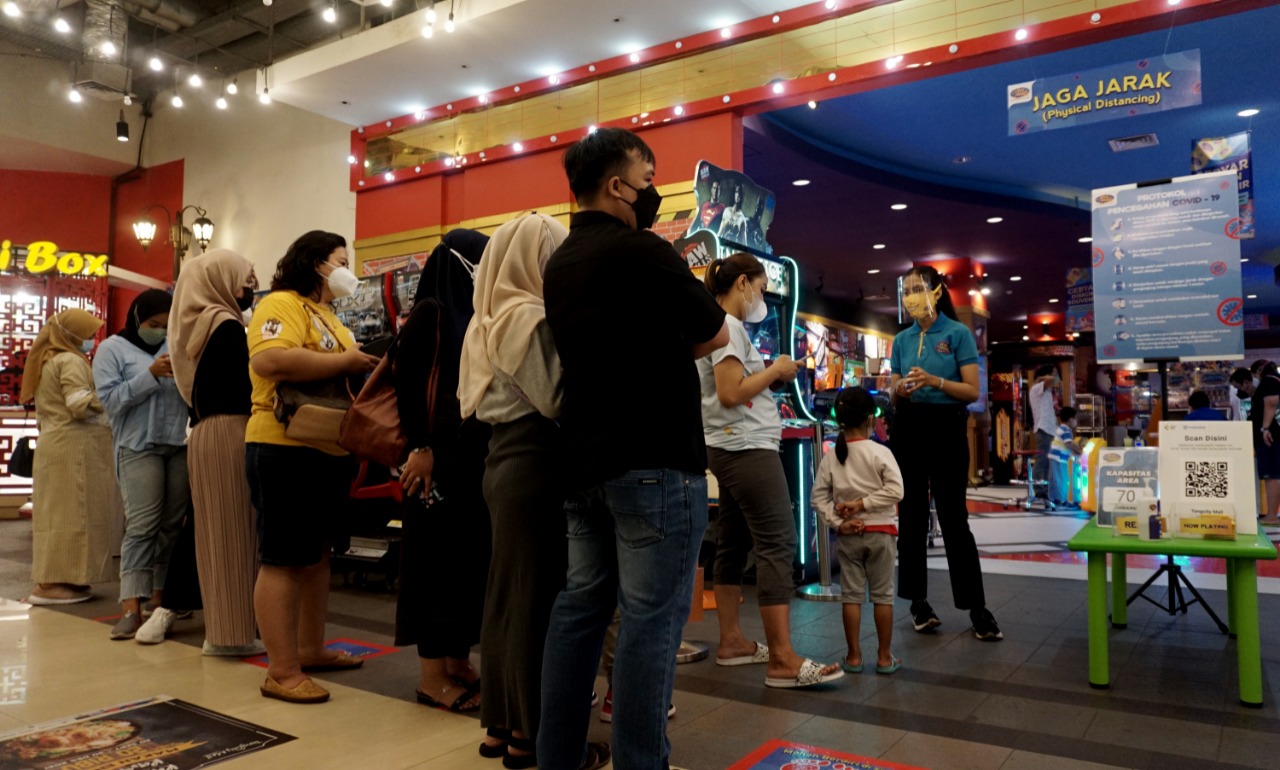Pelonggaran Pemberlakuan Pembatasan Kegiatan Masyarakat (PPKM) level 2 Kota Tangerang memberi kelonggaran kepada masyarakat untuk bisa membawa anak-anaknya masuk mall dan telah di perbolehkannya anak-anak untuk menikmati zona permainan di Tangerang City Mall (Tangcity) menjadi satu tanda perekonomian di kota tersebut sudah mulai membaik, terlihat kegembiraan anak-anak yang menikmati permainan di lantai 2 dekat Rame-rame Carnival Fun Zone, untuk menikmati permainan di lokasi tersebut pihak Fun Zone membatasi jumlah pengunjung sebanyak 70% dari luas area tersebut dan tetap menjalankan protokol kesehatan. Rabu (20/10/21). Banten Aktual/Dennys