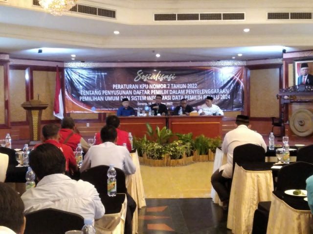 Bantenaktual.com, Serang – Komisi Pemilihan Umum (KPU) Kota Serang mengadakan sosialisasi peraturan KPU No. 7 Tahun 2022 tentang penyusunan daftar pemilih dalam penyelenggaraan pemilihan umum dan sistem informasi data pemilih pemilu 2024 bertempat di Hotel Le Dian Kota Serang, Rabu (16/11).